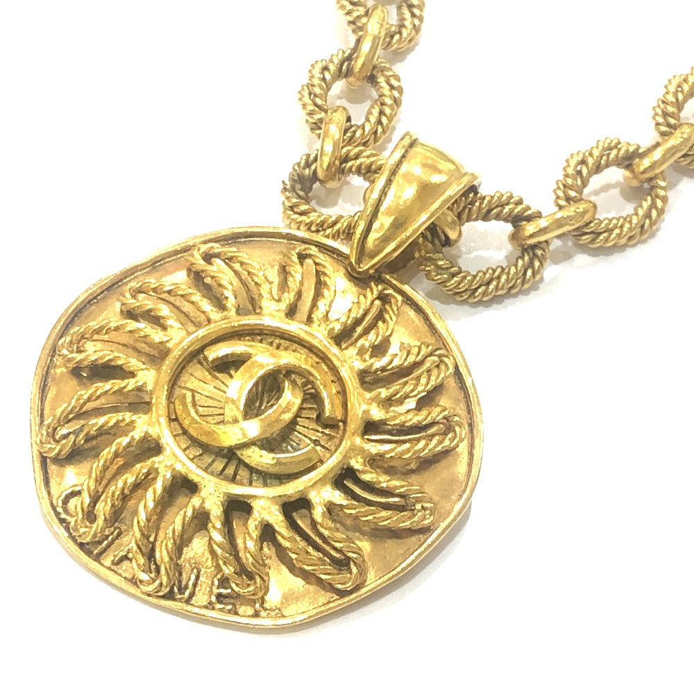 CHANEL 94A ココマーク 太陽モチーフ チェーン ヴィンテージ ネックレス GP レディース ゴールド