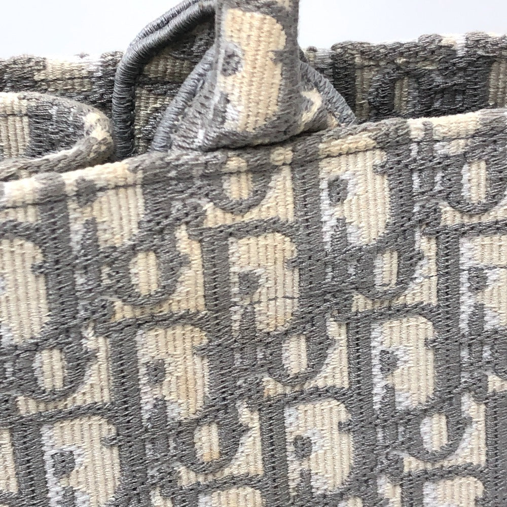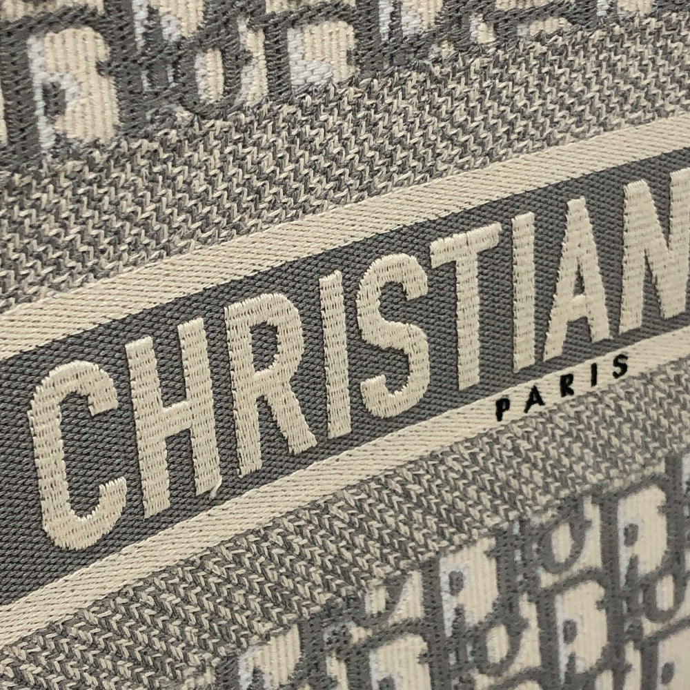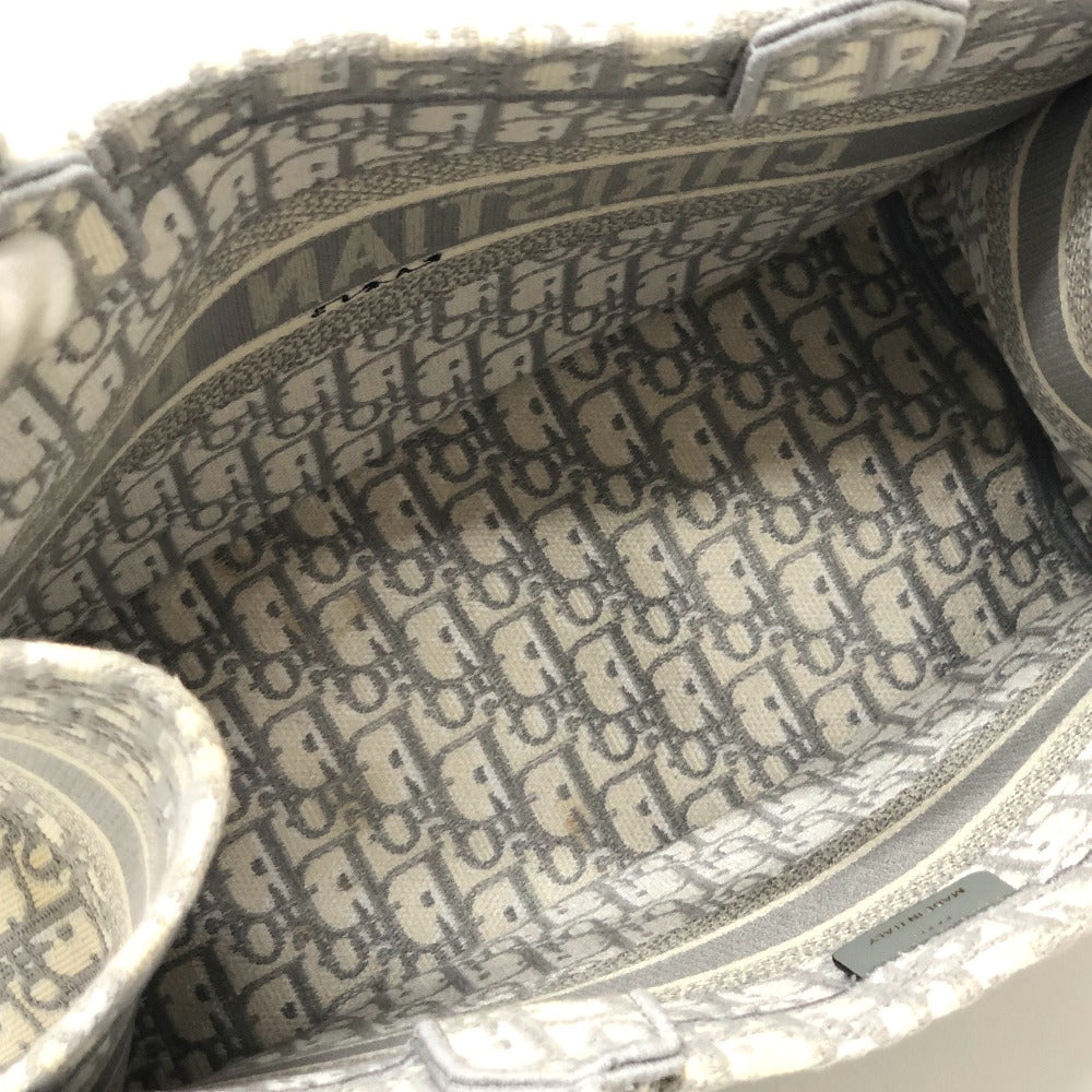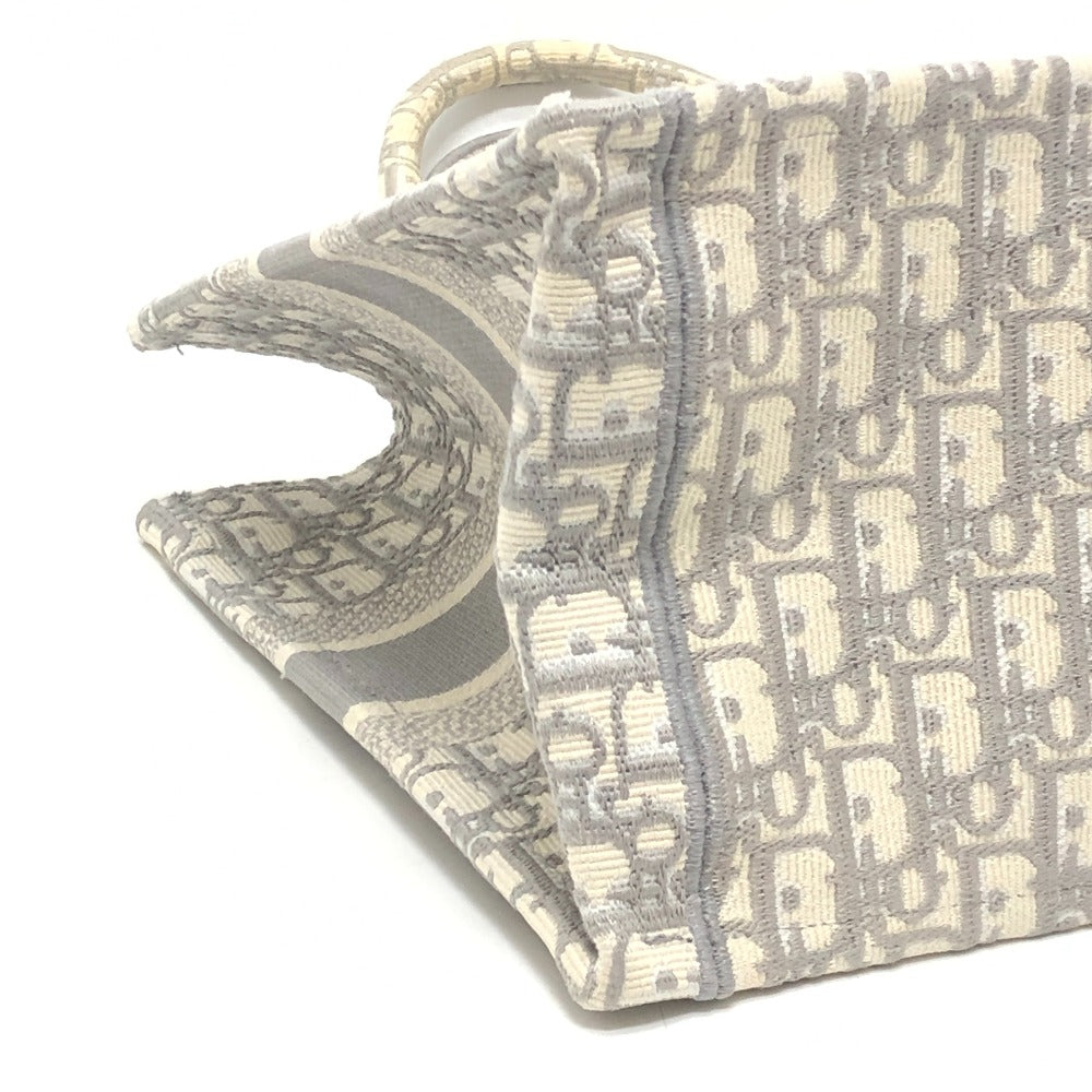 Dior ブックトート ミディアム カバン ハンドバッグ オブリーク エンブロイダリー トートバッグ キャンバス レディース グレー
