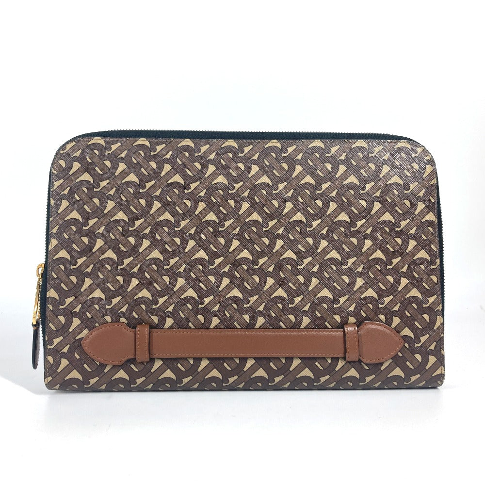 BURBERRY TB Logo Bag Second Bag Pouch Clutch Bag Leather/Canvas Unisex Brown