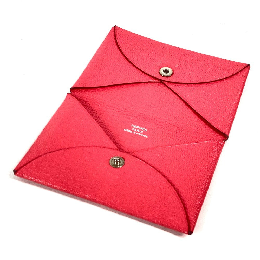 HERMES Calvi Pass Case Business Card Holder Card Case Chevre Unisex Pink