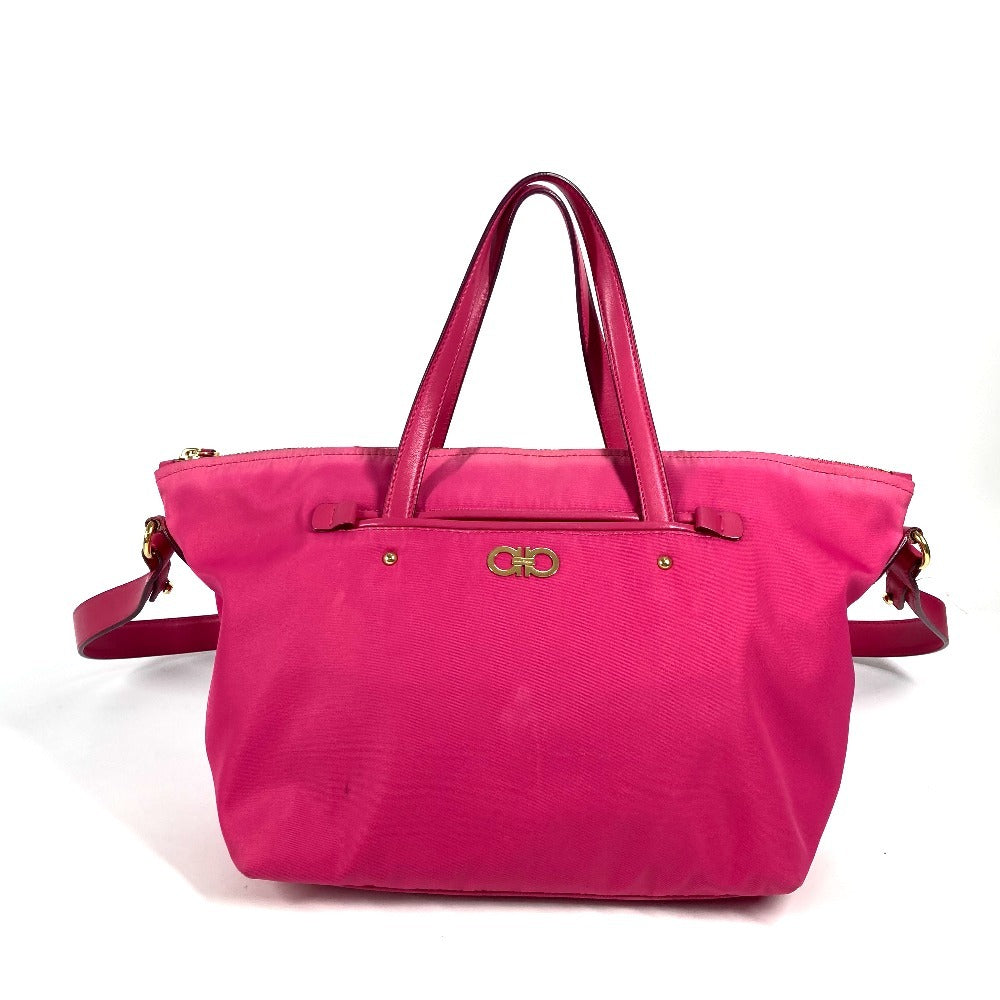 Salvatore Ferragamo Gancini Logo 2WAY Bag Tote Bag Shoulder Bag Crossbody Handbag Nylon Ladies Pink
