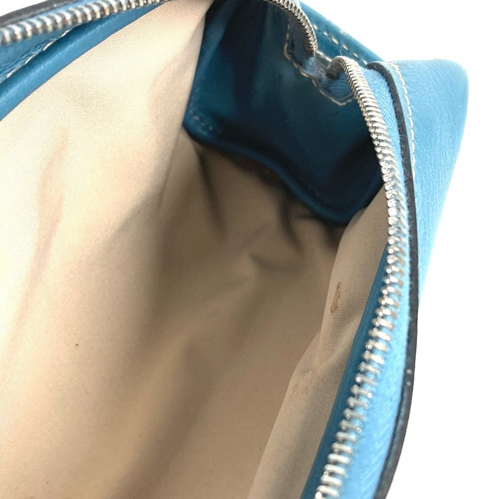 HERMES Pencil Case Stationery Pouch Pen Case Leather Women's Blue