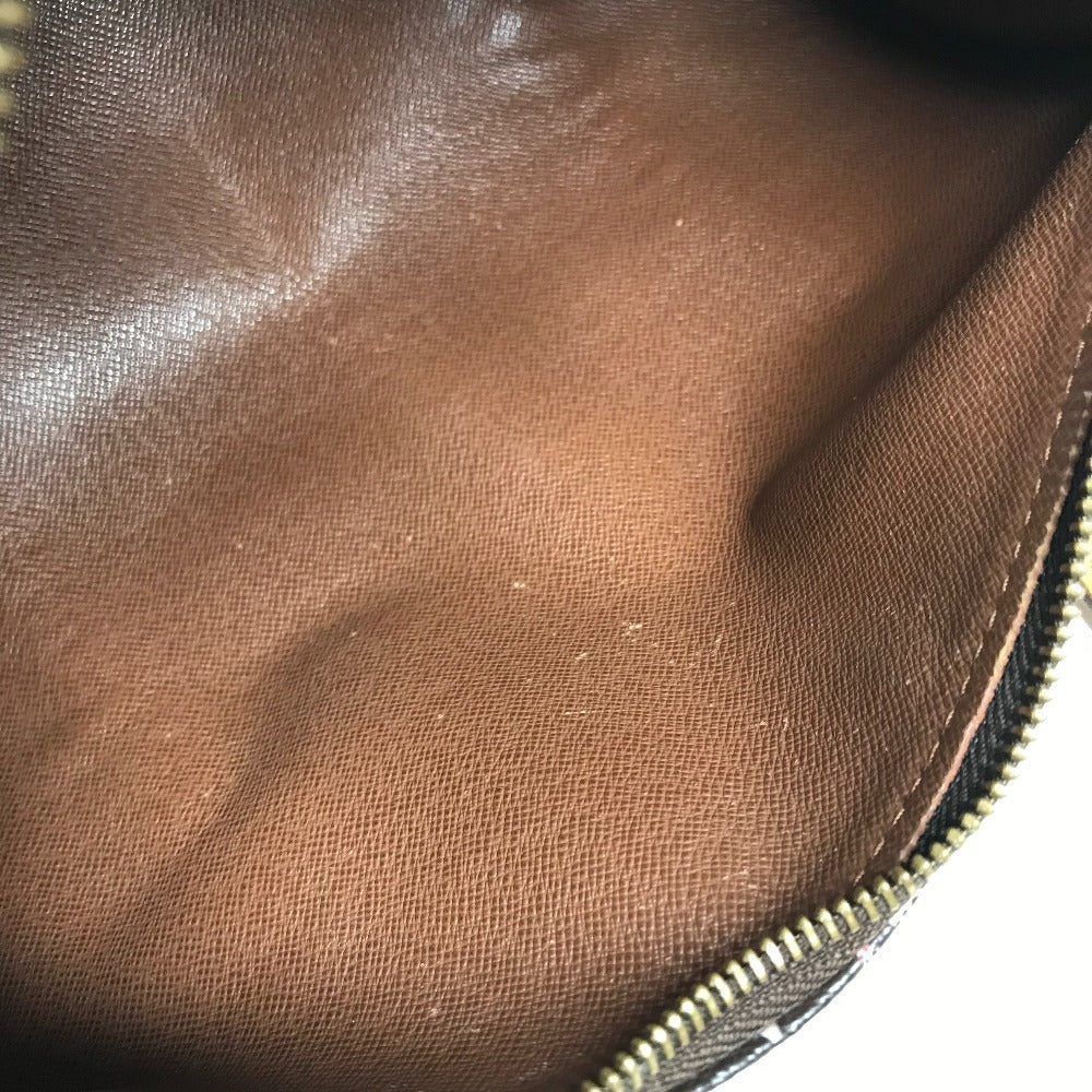 outside Scratches, dirt, abrasions, peeling, stains on tanned leather, logo (letter) disappearing.