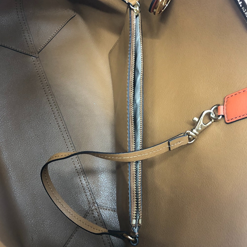 Michael Kors Logo Bag Reversible Handbag Shoulder Tote Bag Leather Women's Brown x Orange