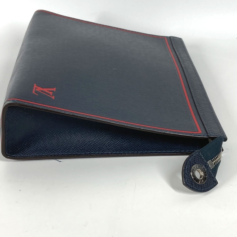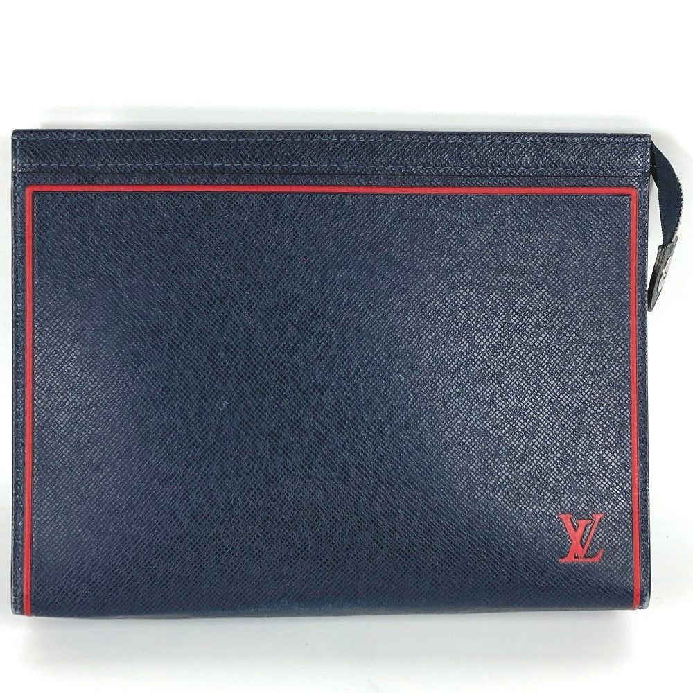 LOUIS VUITTON M63394 Taiga Pochette Voyage Bag Pouch Bicolor Second Bag Taiga Leather Men's Navy