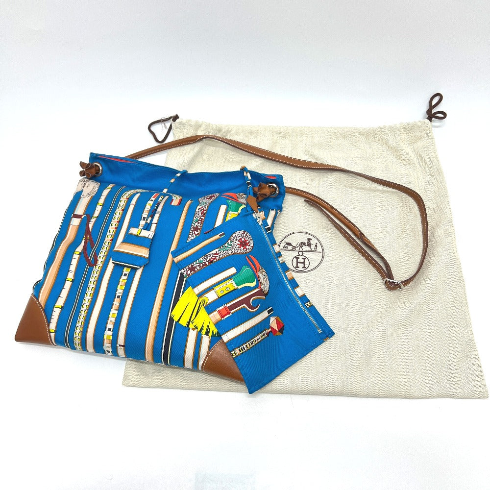 HERMES シルキーシティ PM 斜め掛け カバン ポーチ付き バッグ ショルダーバッグ シルク レディース ブルー