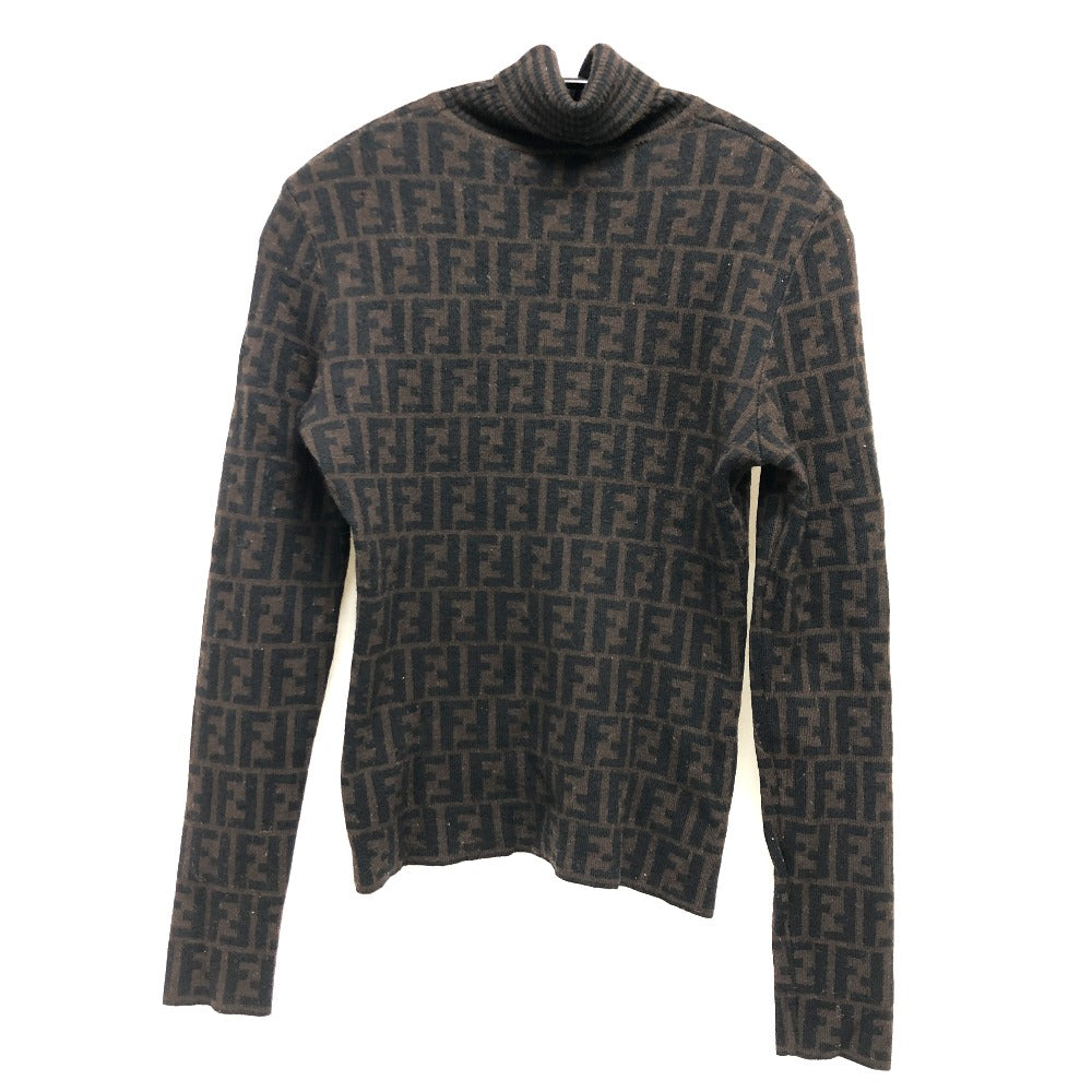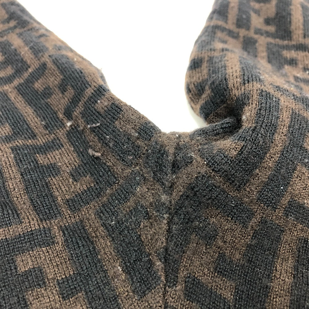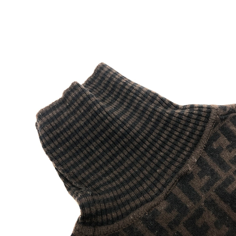 FENDI Zucca Apparel High Neck Turtleneck Knit Tops Sweater Cotton Women's Brown