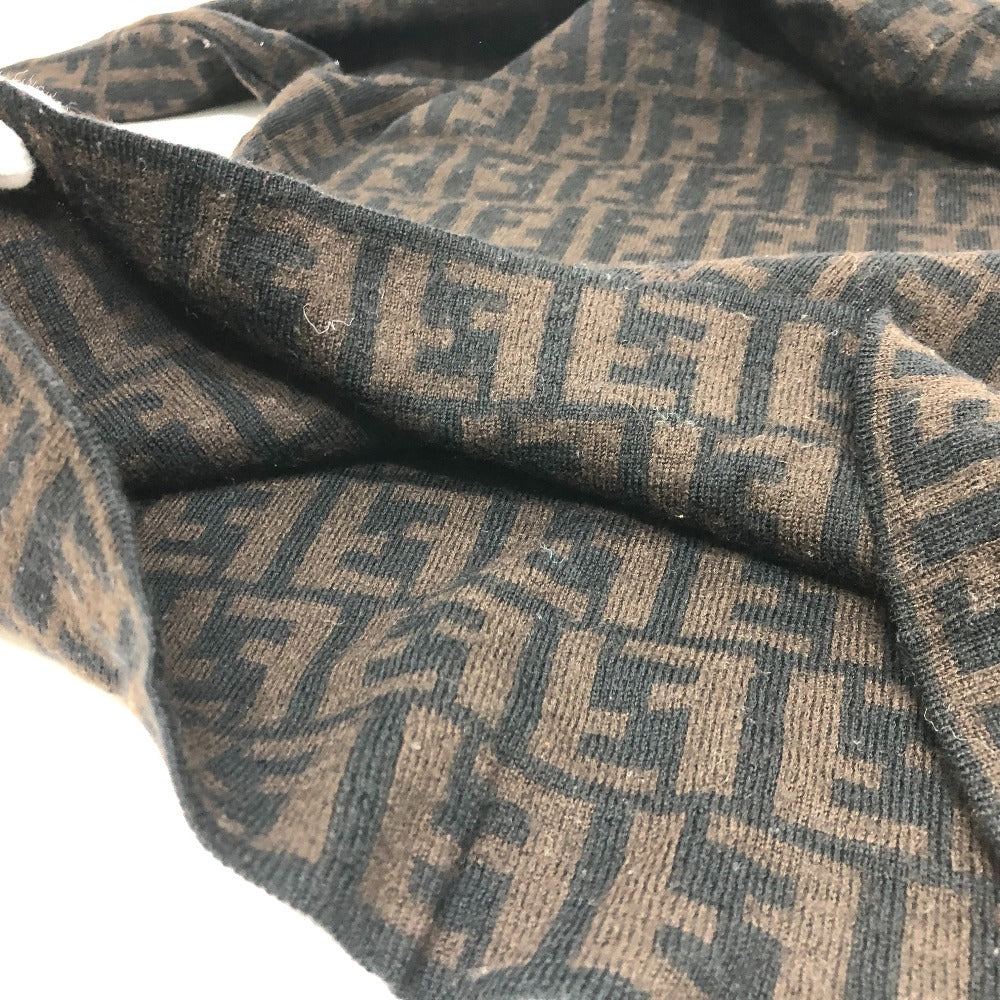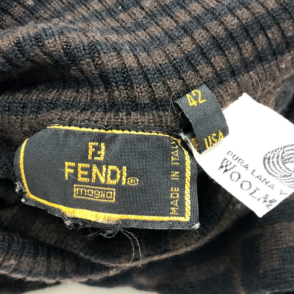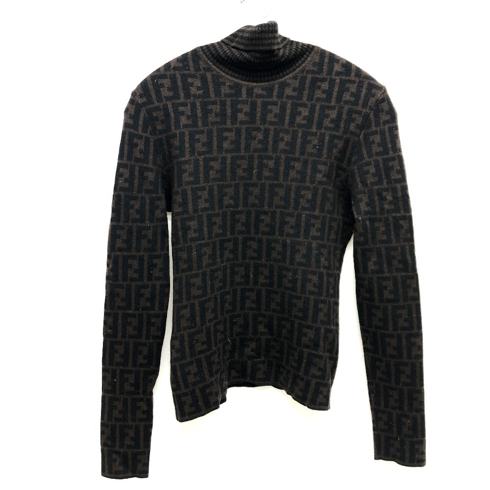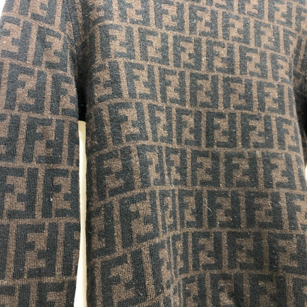 FENDI Zucca Apparel High Neck Turtleneck Knit Tops Sweater Cotton Women's Brown