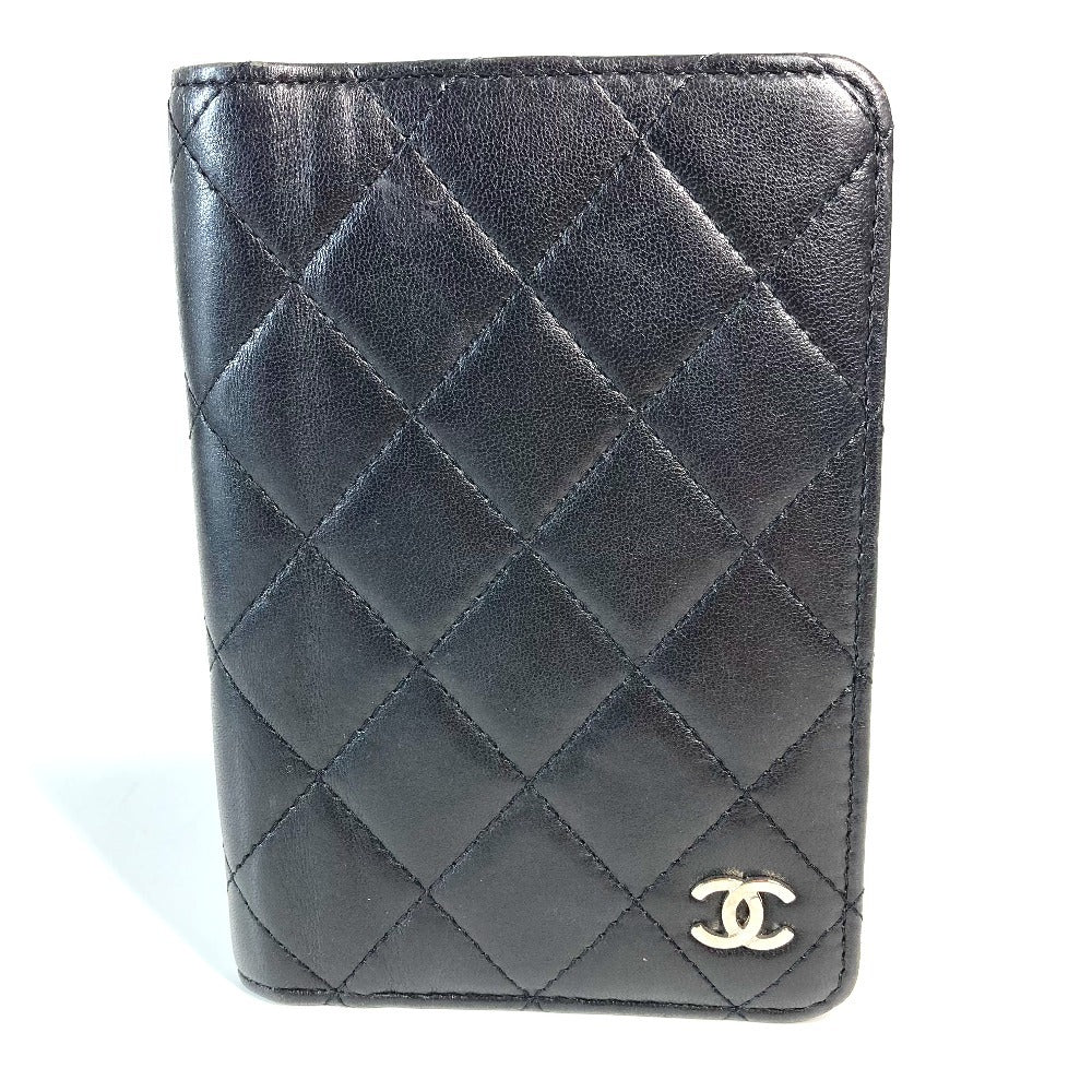 CHANEL CC Logo Coco Mark Matelasse Quilted Cover Case Stationery Passport Case Leather Unisex Black