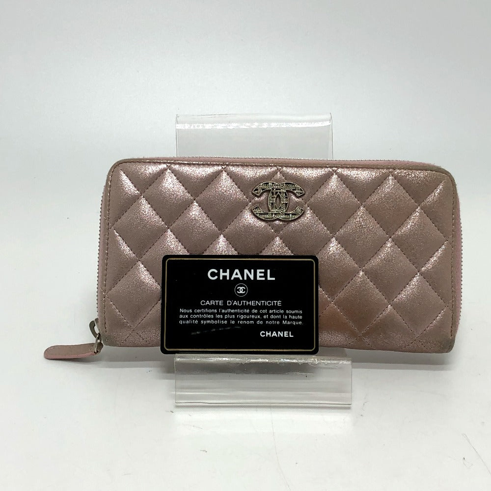 CHANEL A80003 Coco Mark Chain Me Matelasse Round Zipper Long Wallet Leather Women's