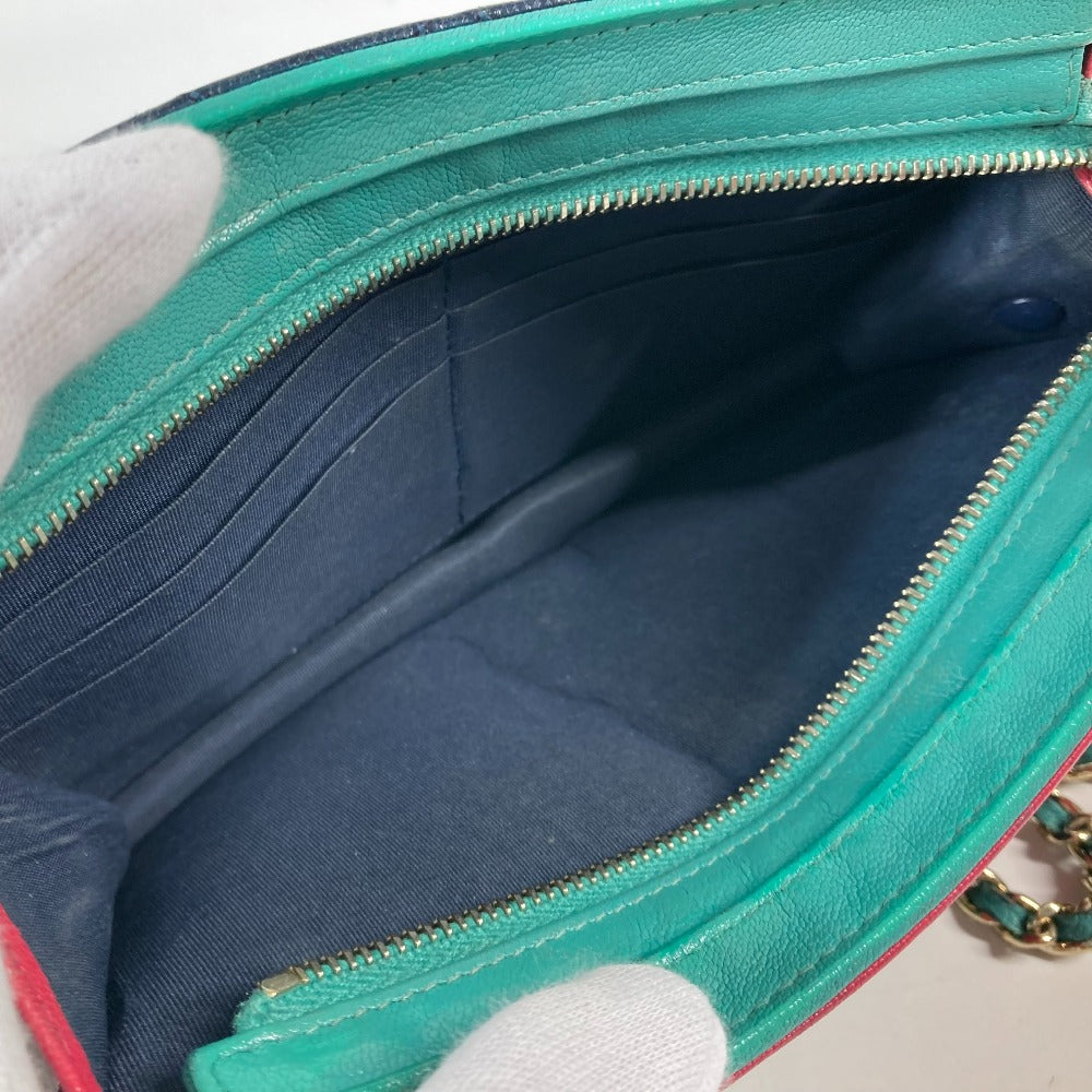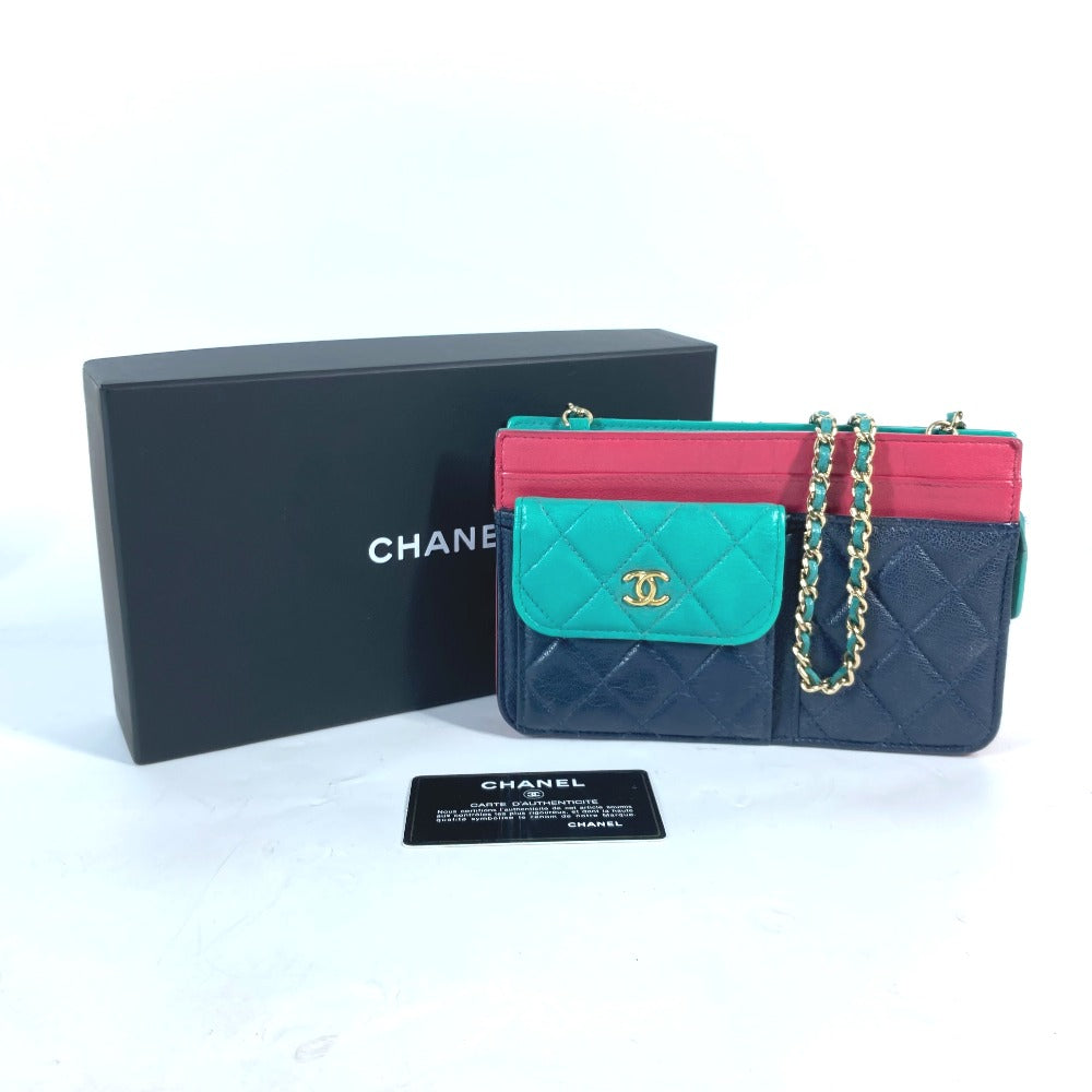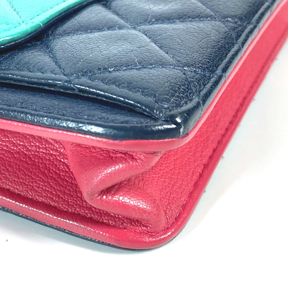 CHANEL AP1138 2020 Cruise Tricolor Color Chain Wallet CC Coco Mark Bag Shoulder Bag Crossbody Pochette Long Wallet Caviar Skin Women's Navy
