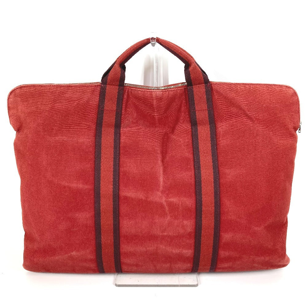 HERMES Four Toe Porte de Cuman Bag Tote Bag Handbag Business Bag Canvas Unisex Wine Red