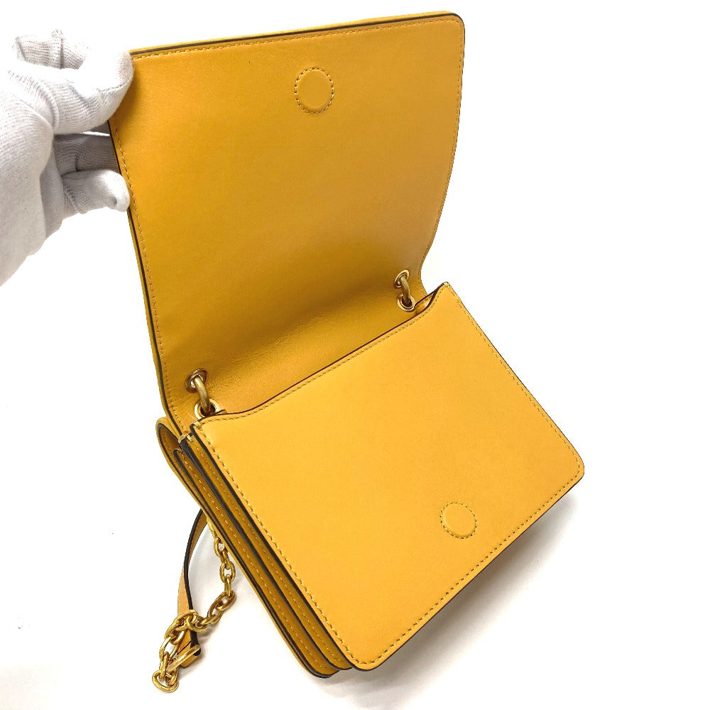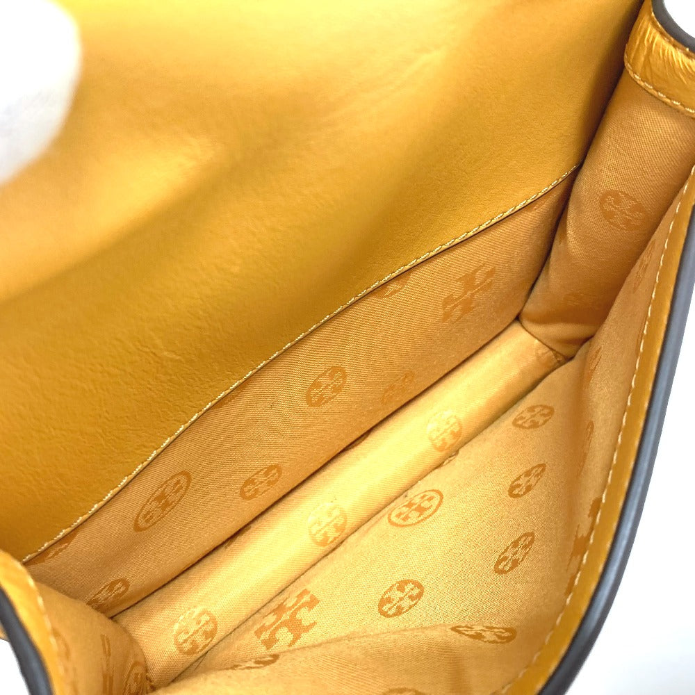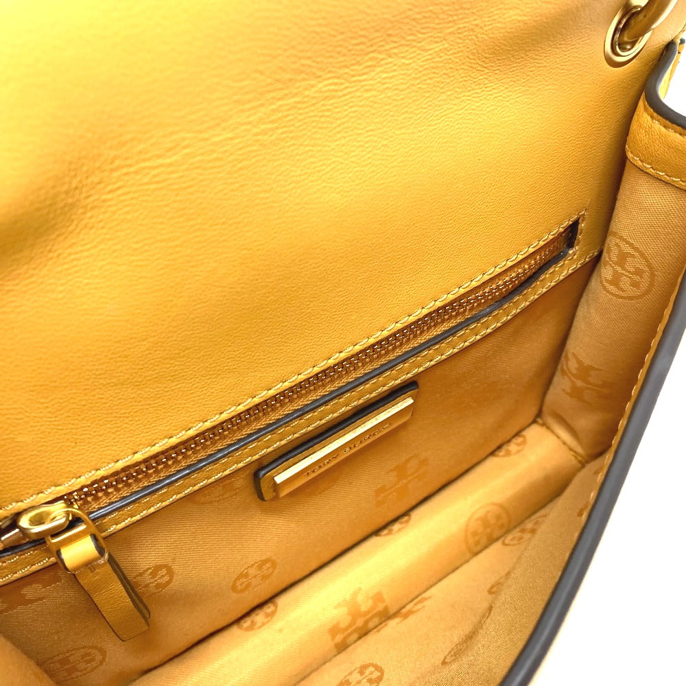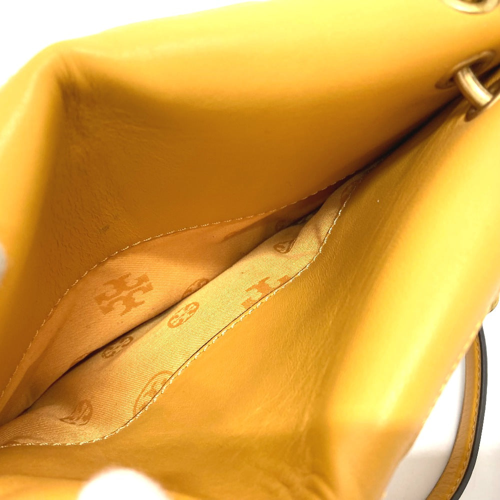 Tory Burch Logo Bag Chain Pochette Shoulder Bag Lamb Leather Women's Yellow
