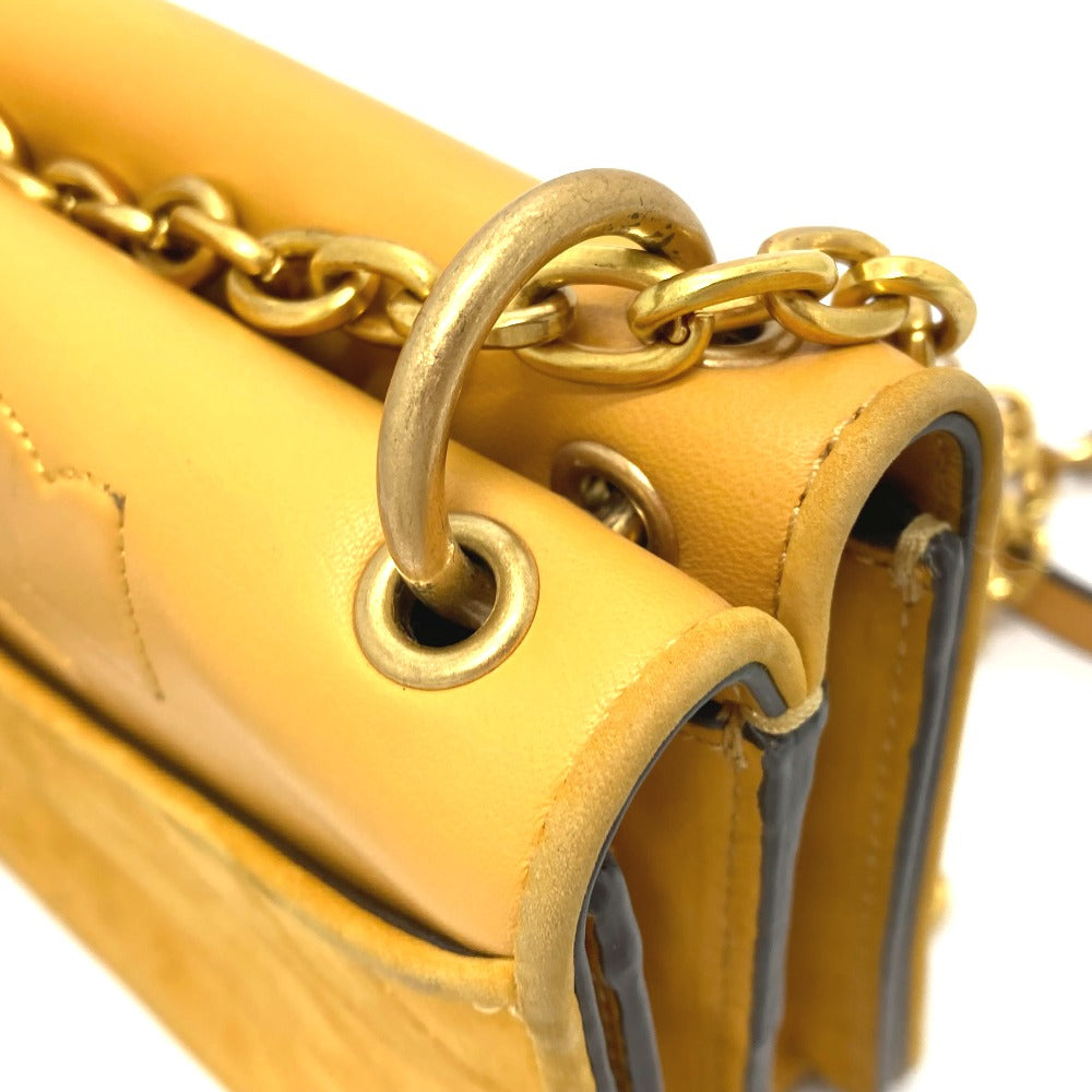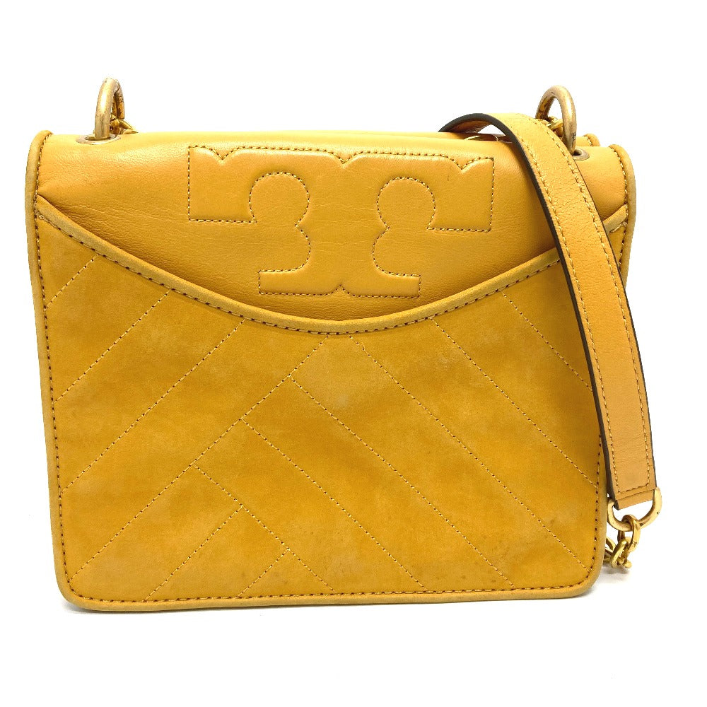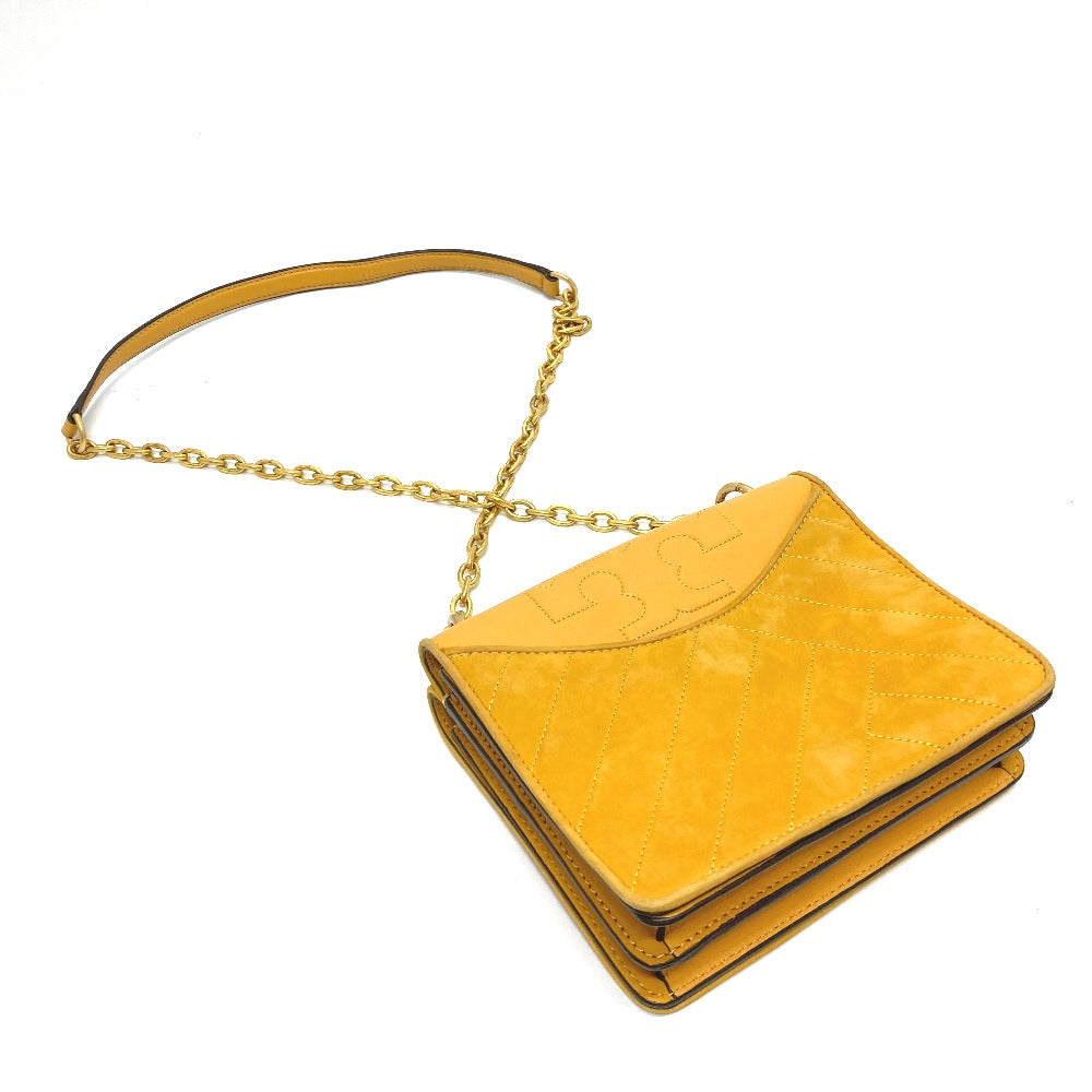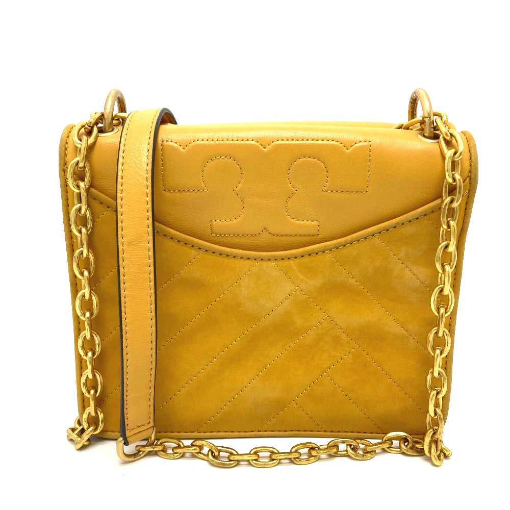 Tory Burch Logo Bag Chain Pochette Shoulder Bag Lamb Leather Women's Yellow