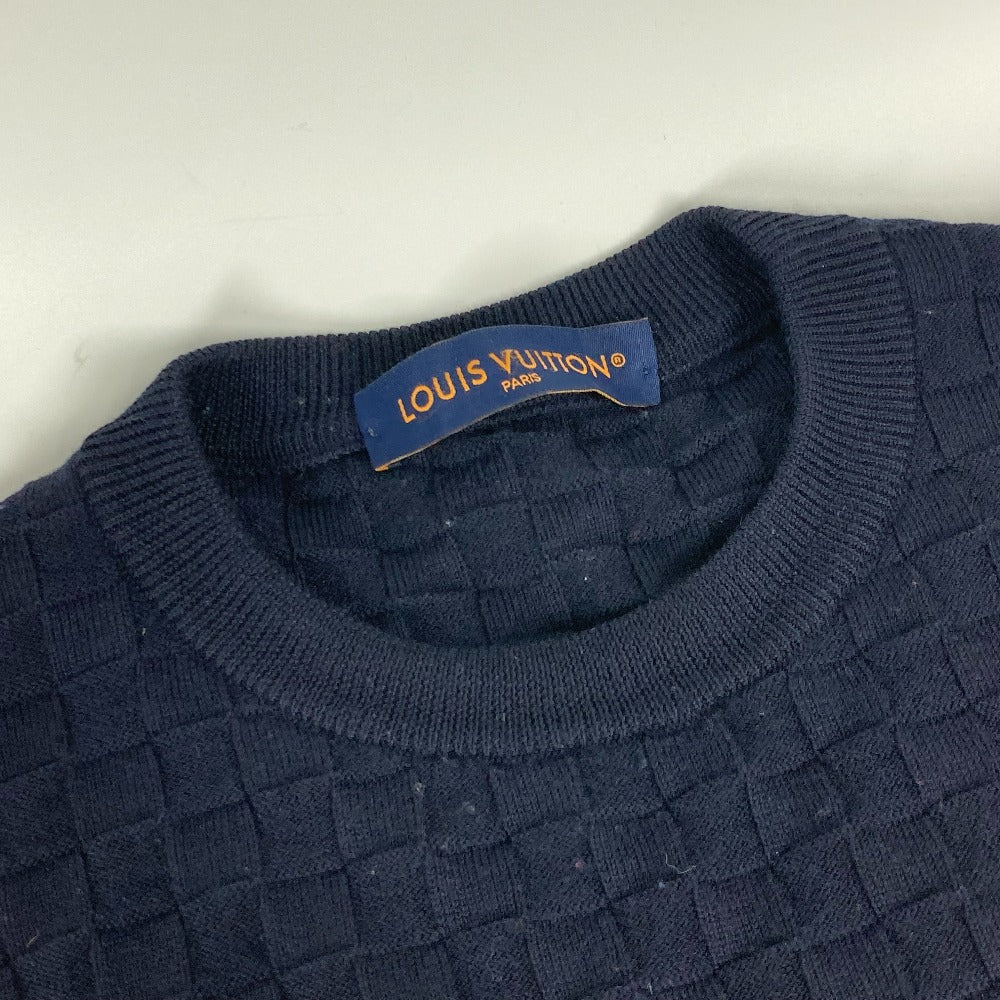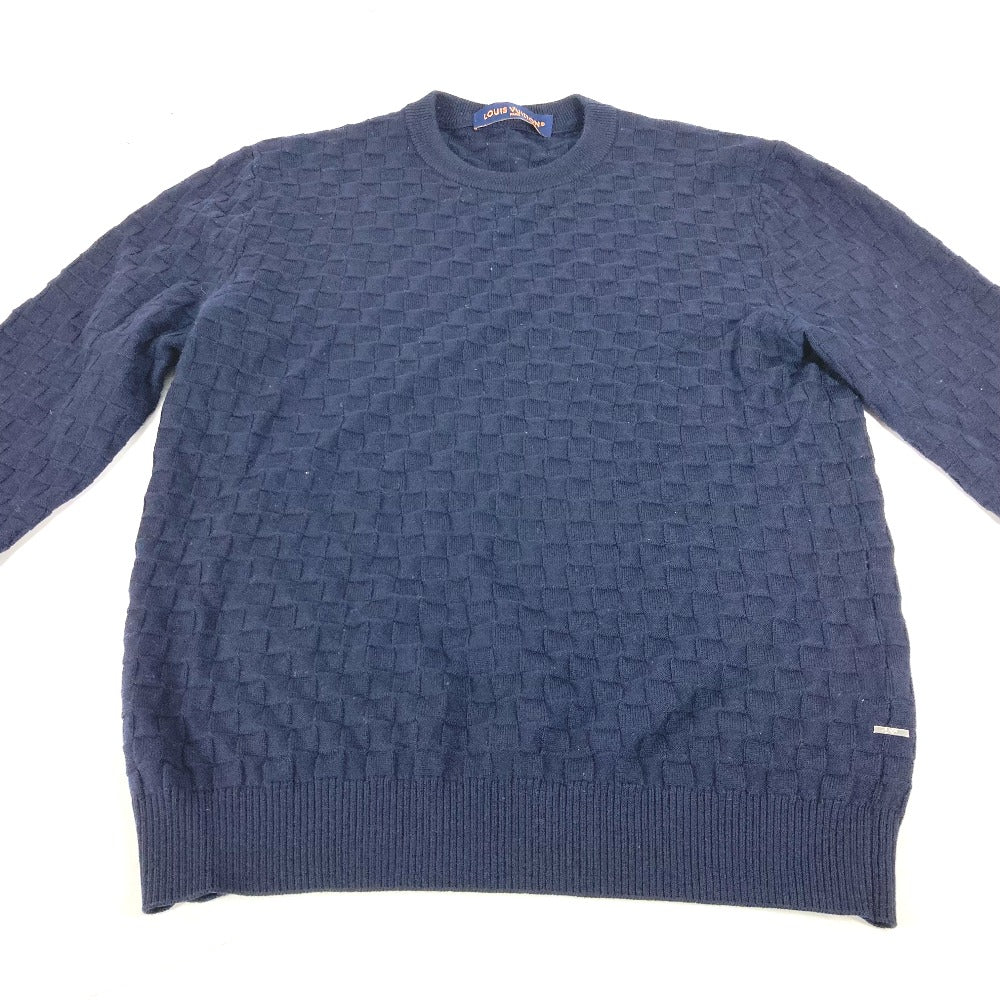 LOUIS VUITTON Damier Knit Long Sleeve Tops Apparel RM222Q Sweater Wool Men's Navy