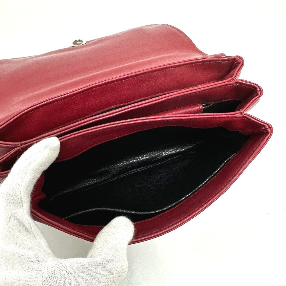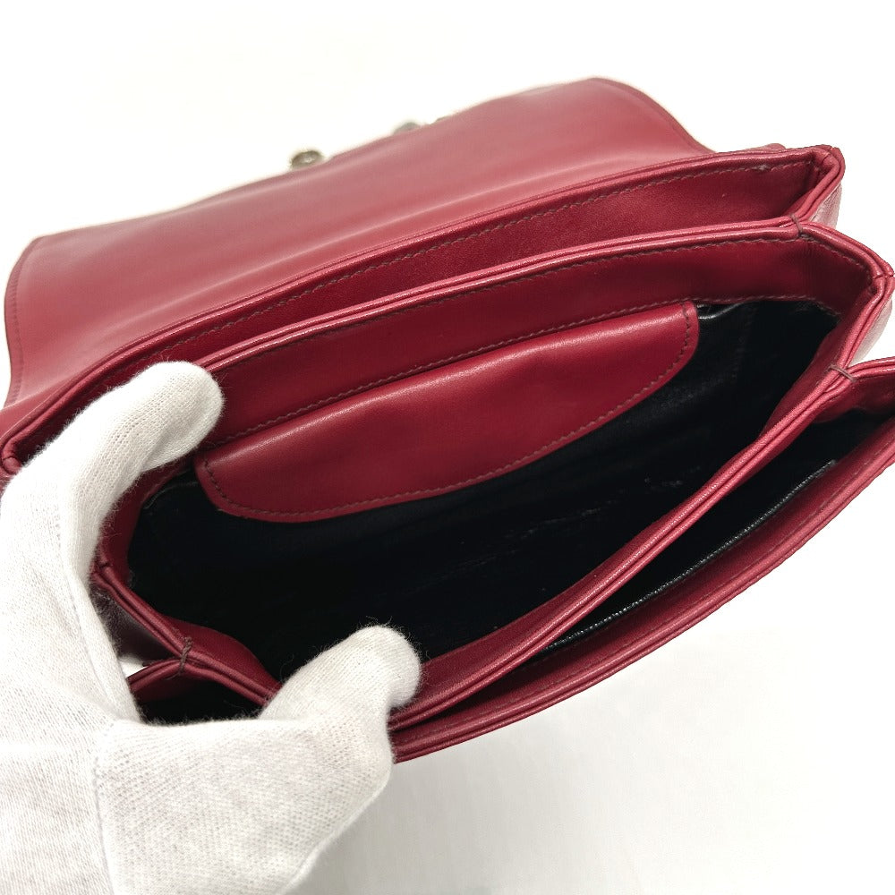 PRADA 1BD009 Logo Chain Bag Crossbody Shoulder Bag Leather Women's Red