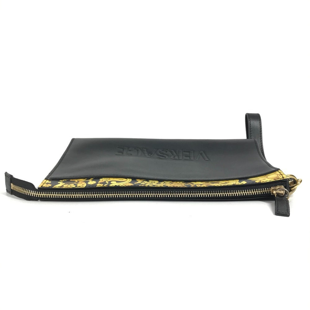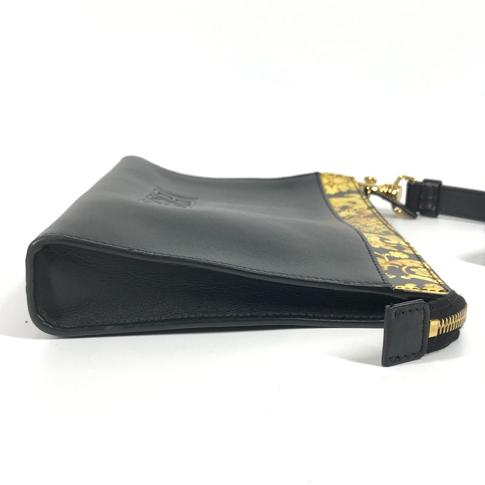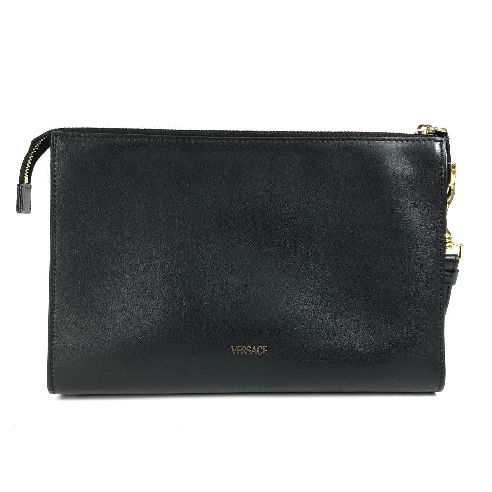 VERSACE ストラップ付 ロゴ カバン セカンドバッグ クラッチバッグ レザー ユニセックス ブラック