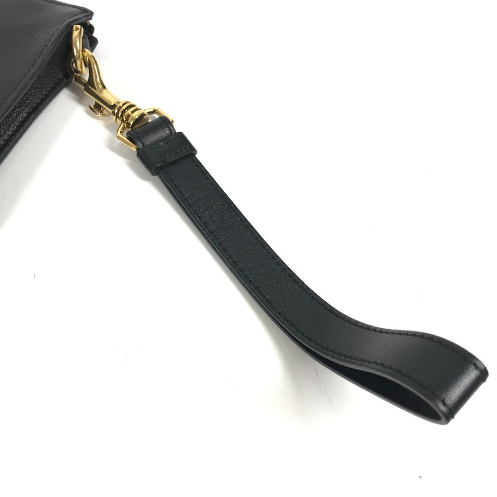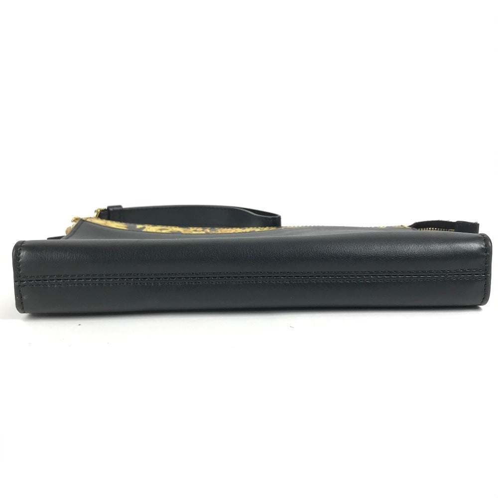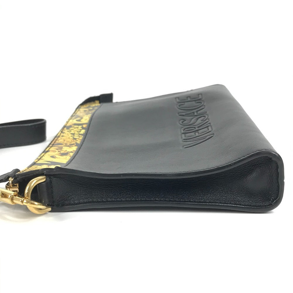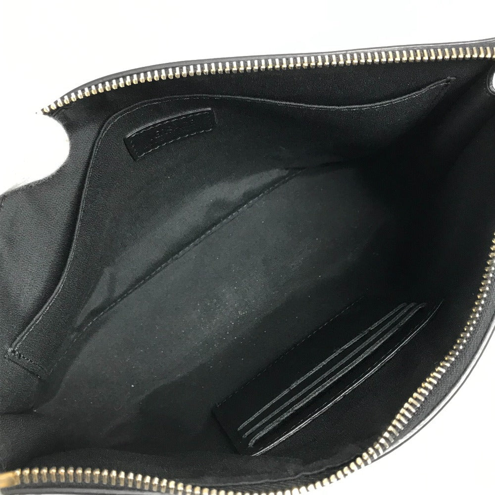 VERSACE ストラップ付 ロゴ カバン セカンドバッグ クラッチバッグ レザー ユニセックス ブラック