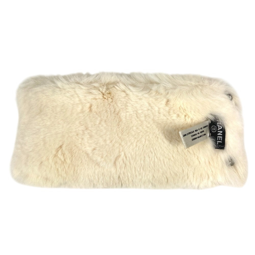 CHANEL ヴィンテージ CC ココマーク ロゴ ファー ラビット アクセサリー バングル ブレスレット ファー ユニセックス ブラック