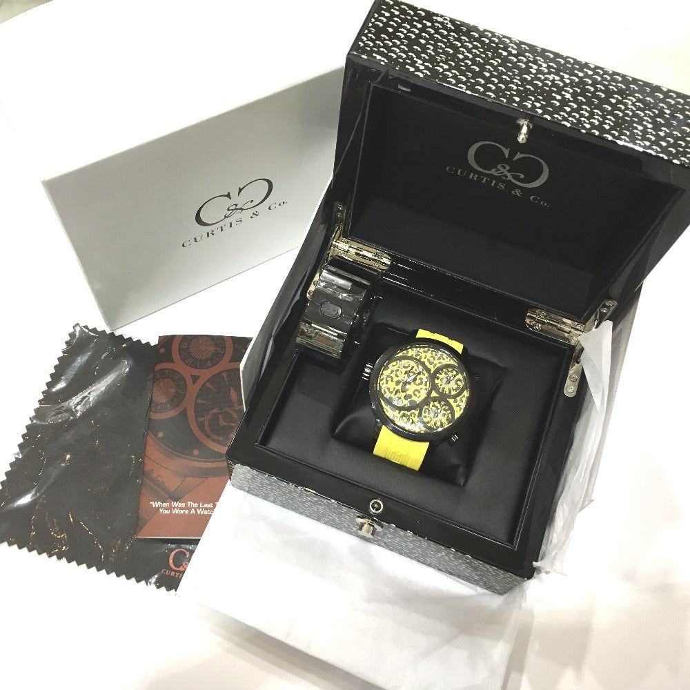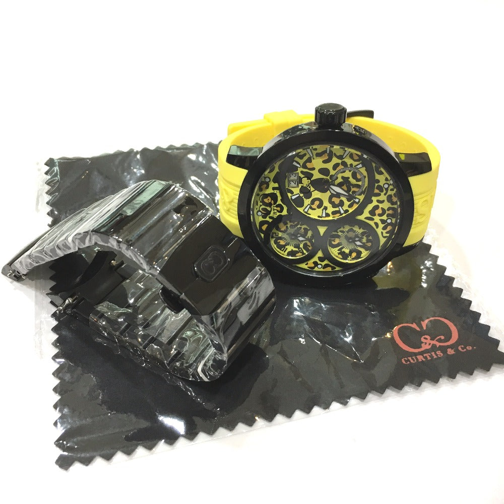 CURTIS & Co. SUW57JPJGY-B BIG Time WORLD クォーツ 腕時計 SS メンズ イエロー