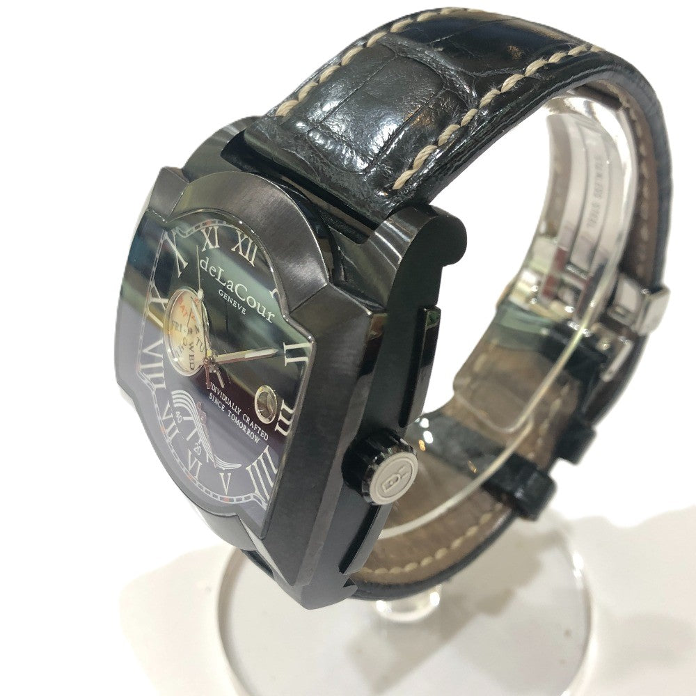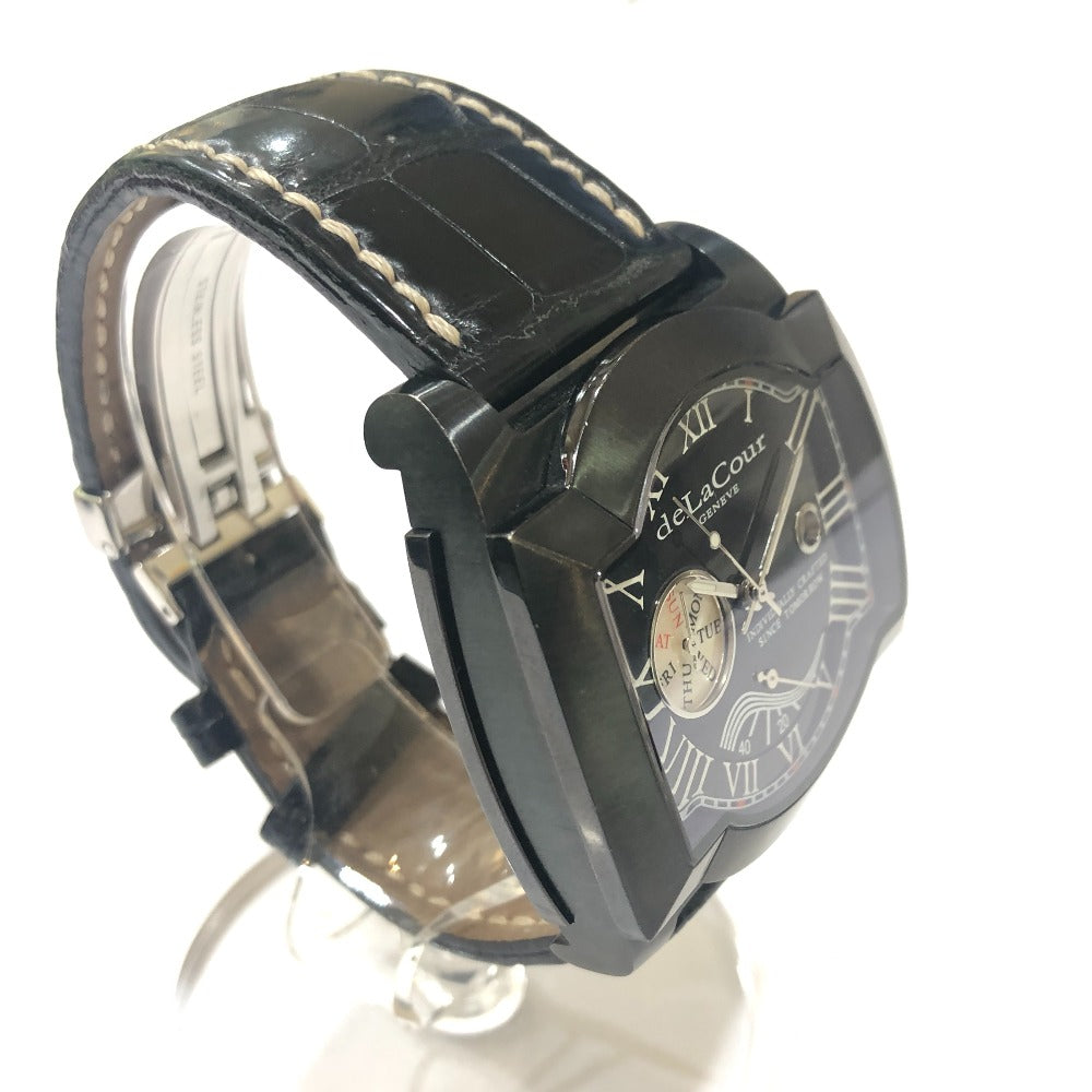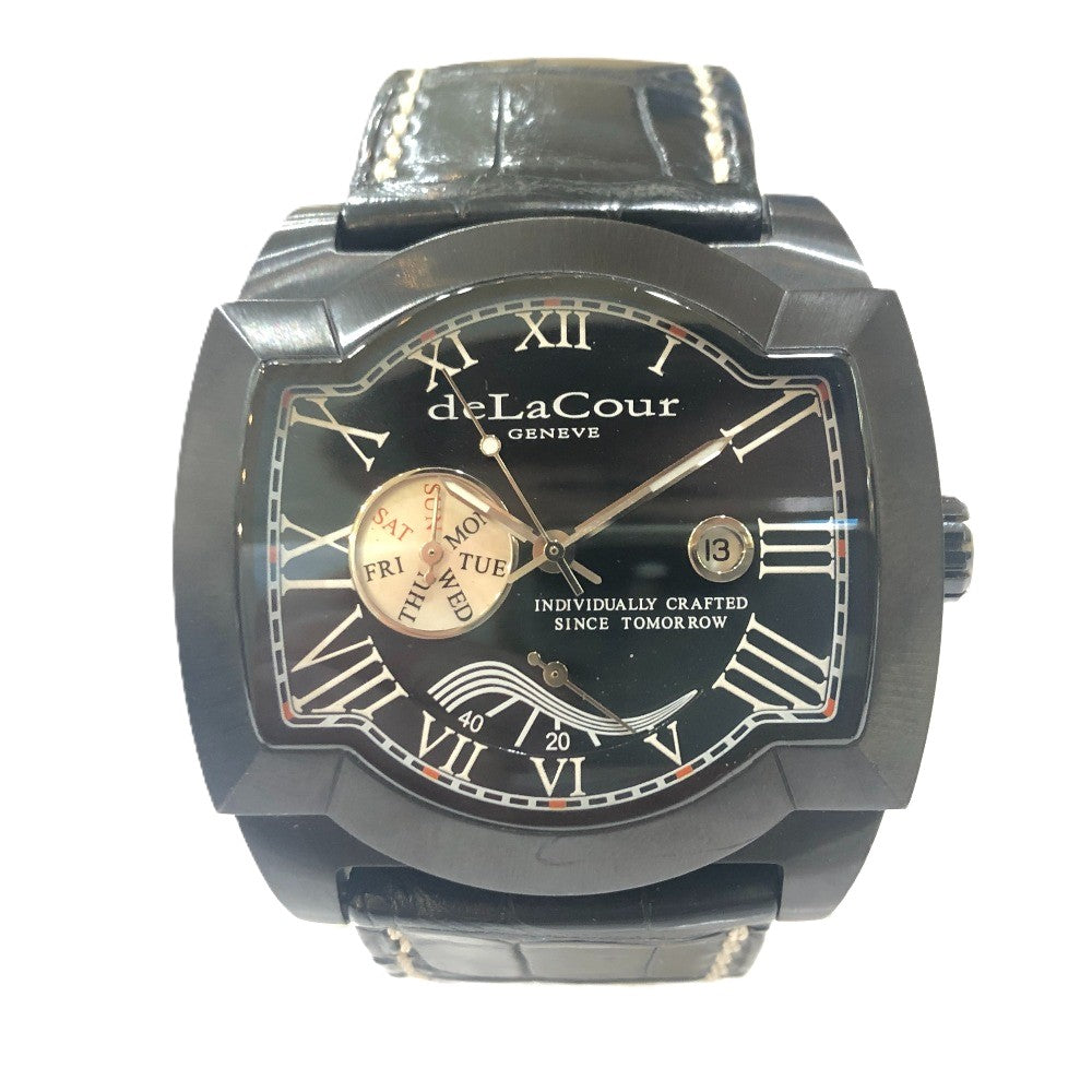 deLaCour サクラ ウィークエンド 自動巻き デイト 腕時計 SS メンズ ブラック