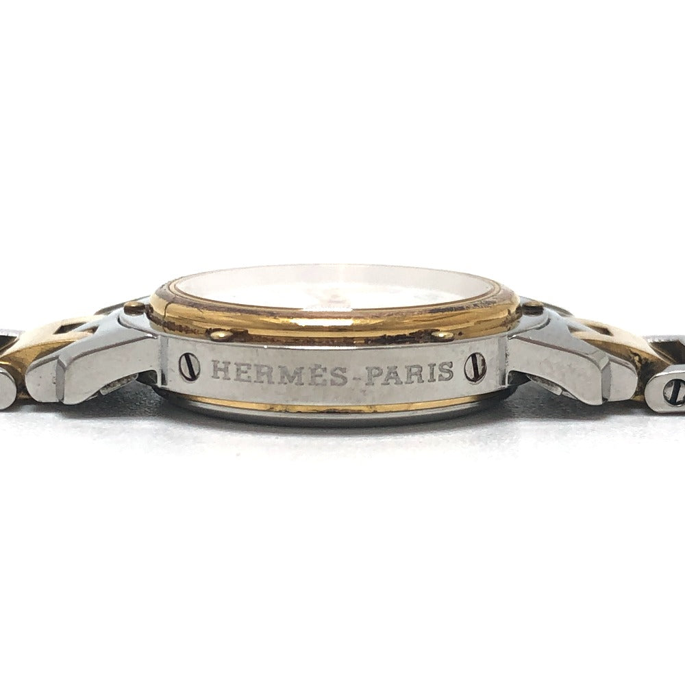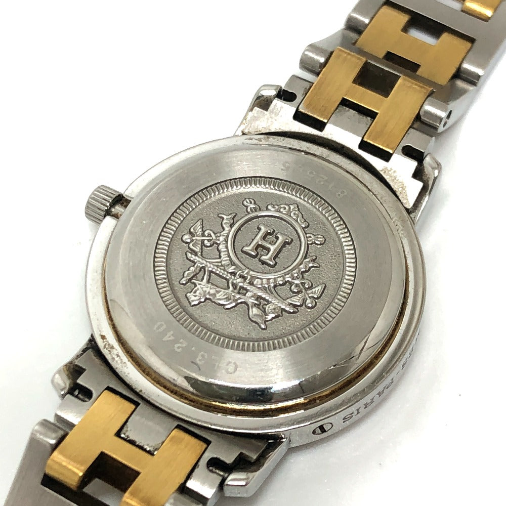 HERMES CL3.240 クリッパー クォーツ デイト ウォッチ ラウンドフェイス コンビ 腕時計 SS レディース シルバー