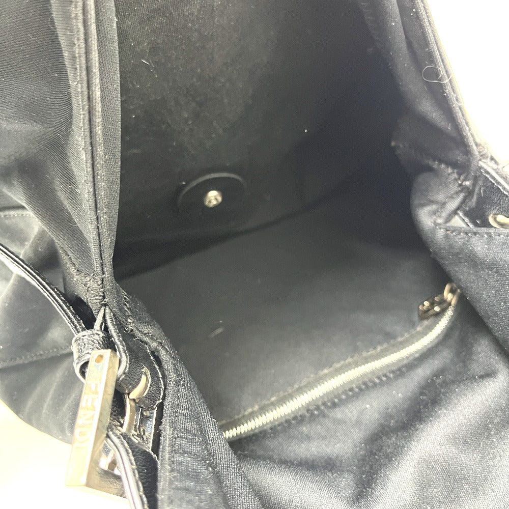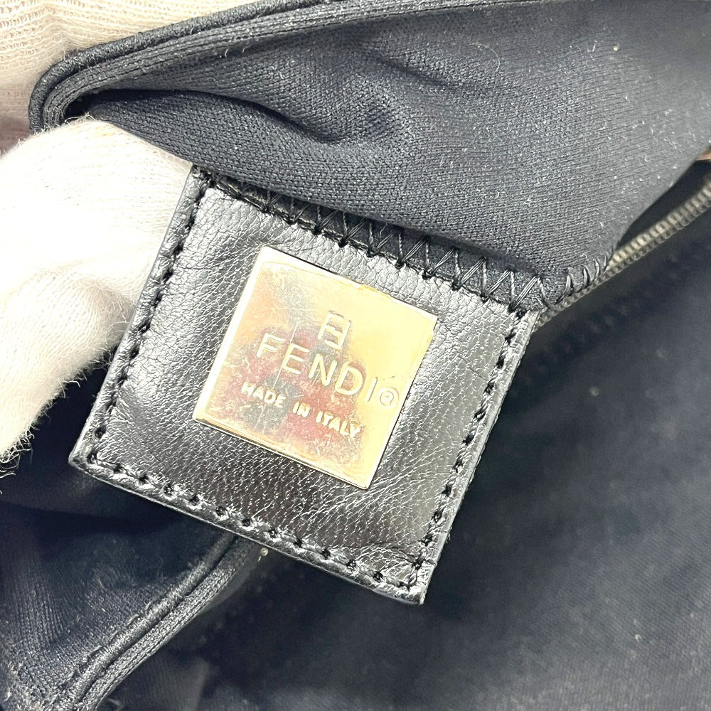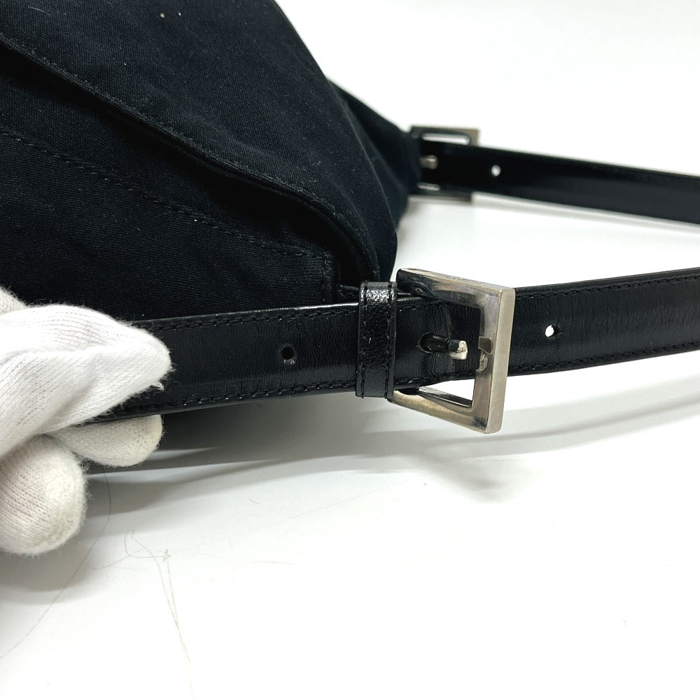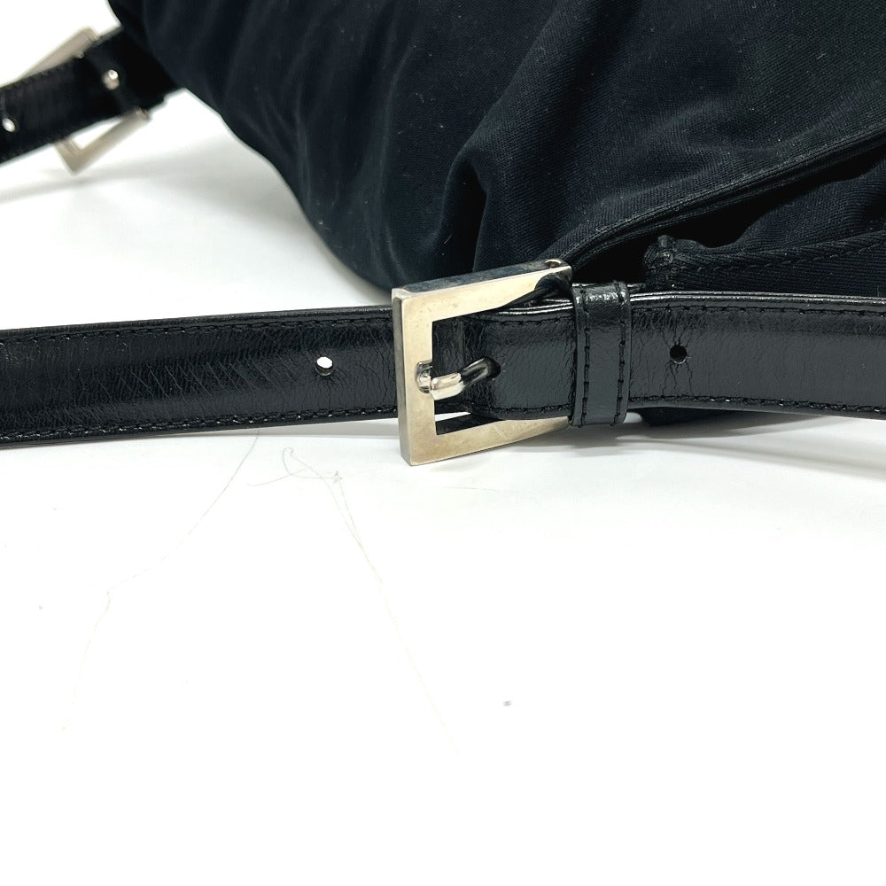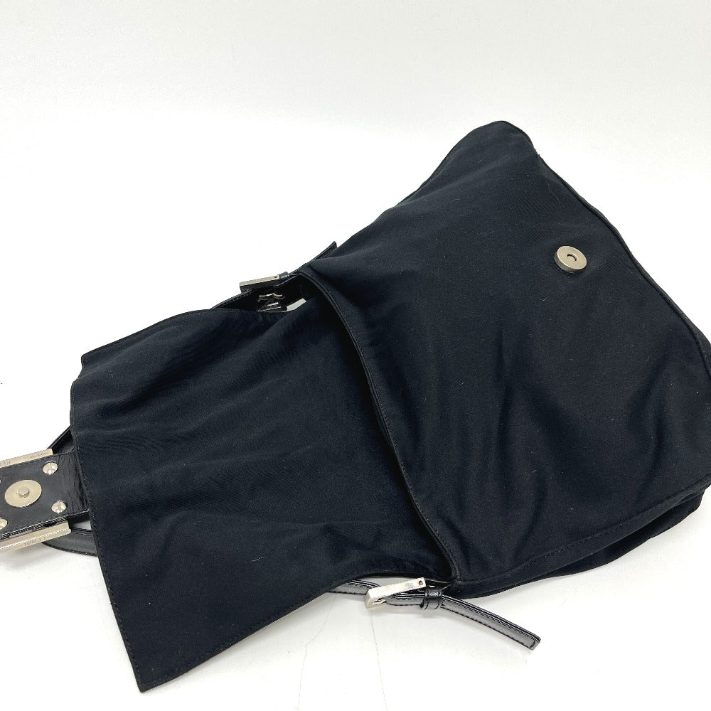 FENDI FFロゴ マンマバケット 肩掛け カバン フラップ バッグ ハンドバッグ ナイロン レディース ブラック
