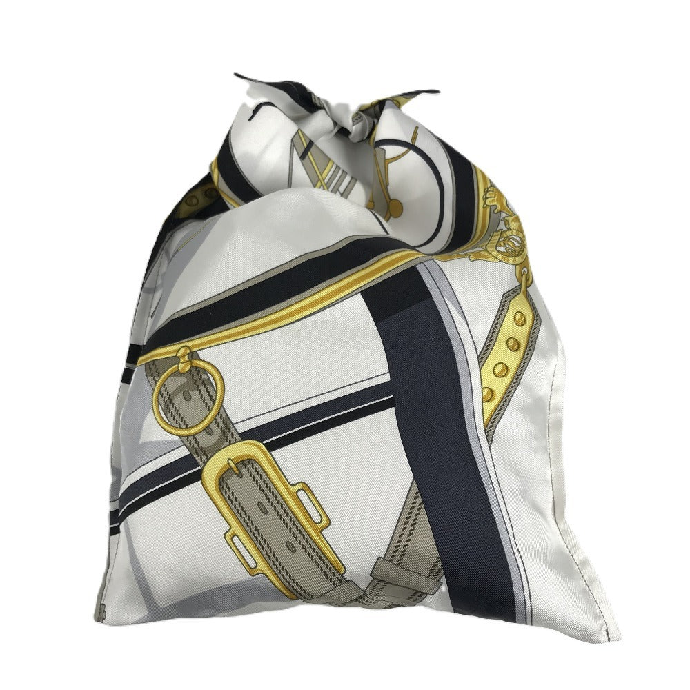 HERMES プティアッシュ petit h ティアッシュ フロシキ PM ポーチ カバン フロシキ ハンドバッグ シルク レディース ホワイト