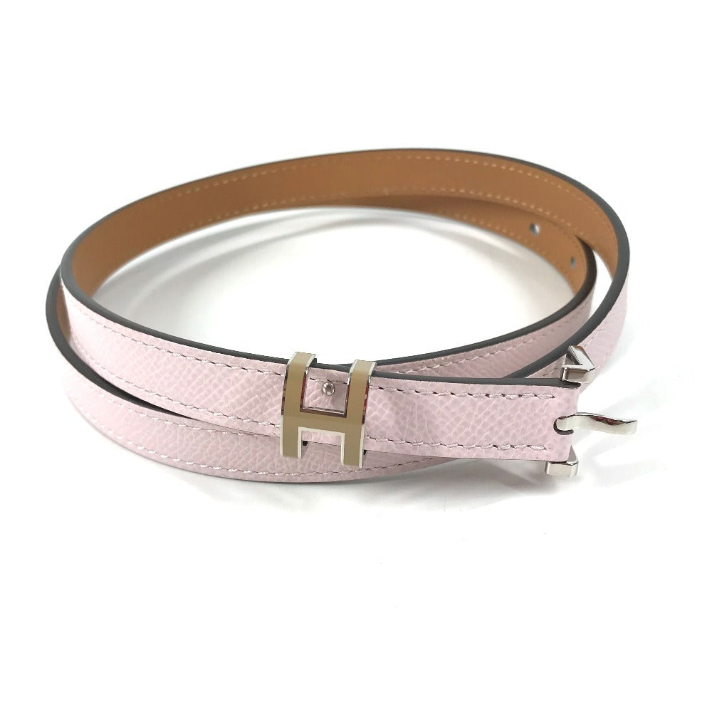 HERMES ポップアッシュ Hロゴ バックルベルト 細ベルト アクセサリー ベルト レザー レディース モーヴペール ピンク