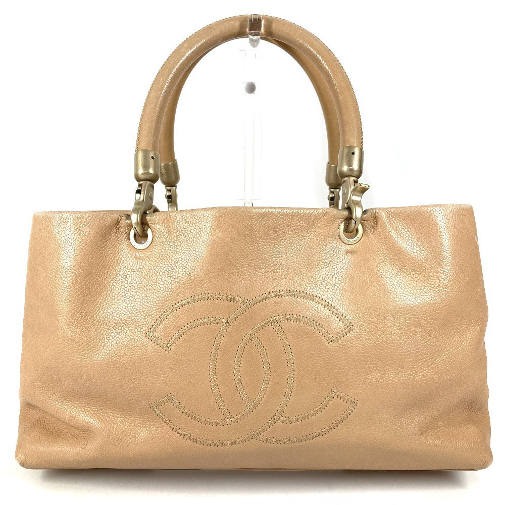 CHANEL CC ココマーク ロゴ カバン トートバッグ 肩掛け ハンドバッグ ショルダーバッグ キャビアスキン ユニセックス ベージュ