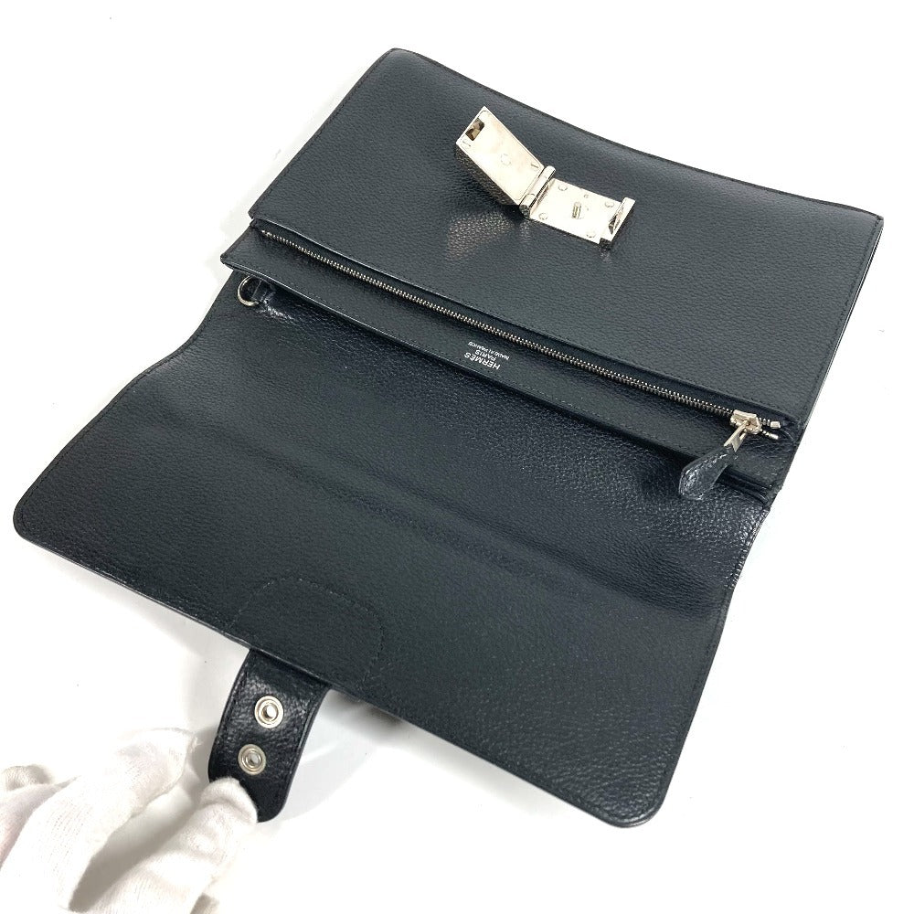 HERMES ヴィンテージ ポシェットジェット セカンドバッグ フラップ カバン ポーチ クラッチバッグ レザー ユニセックス ブラック