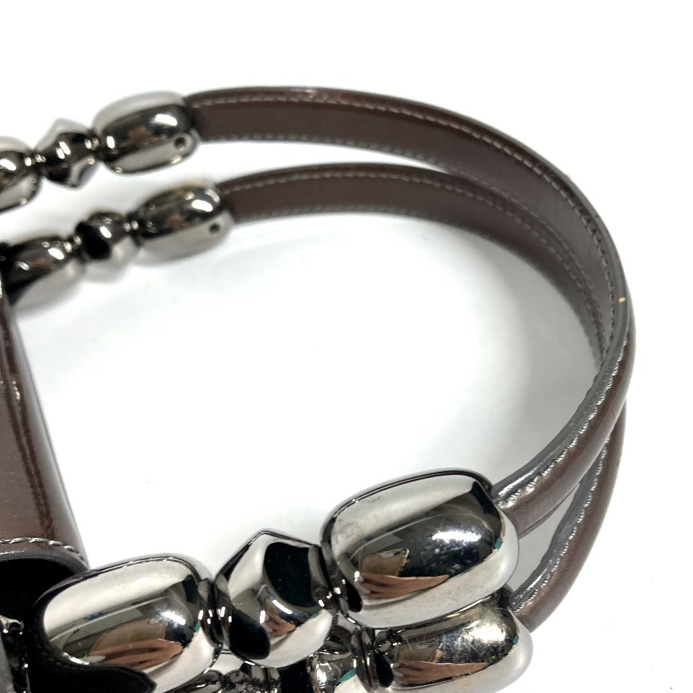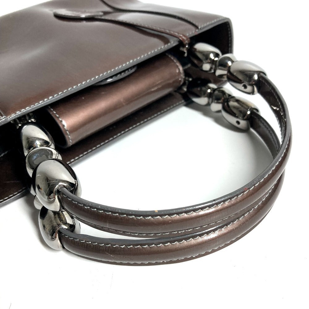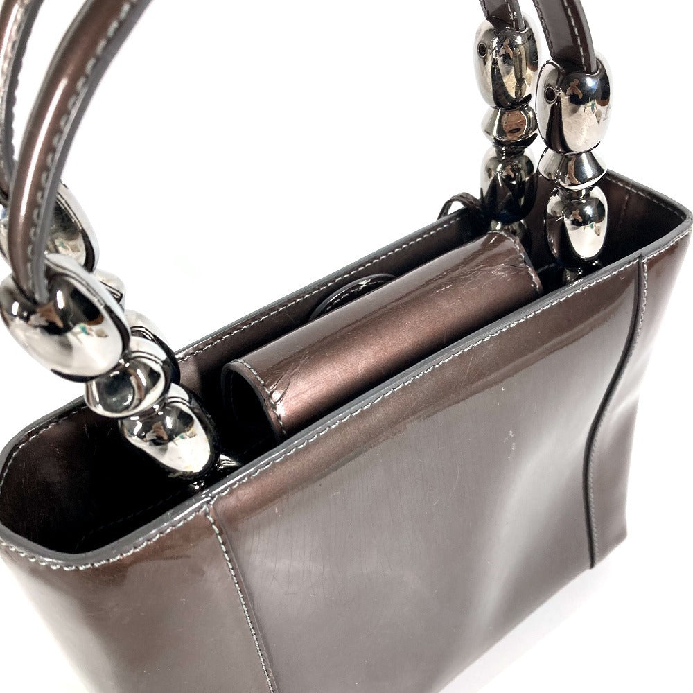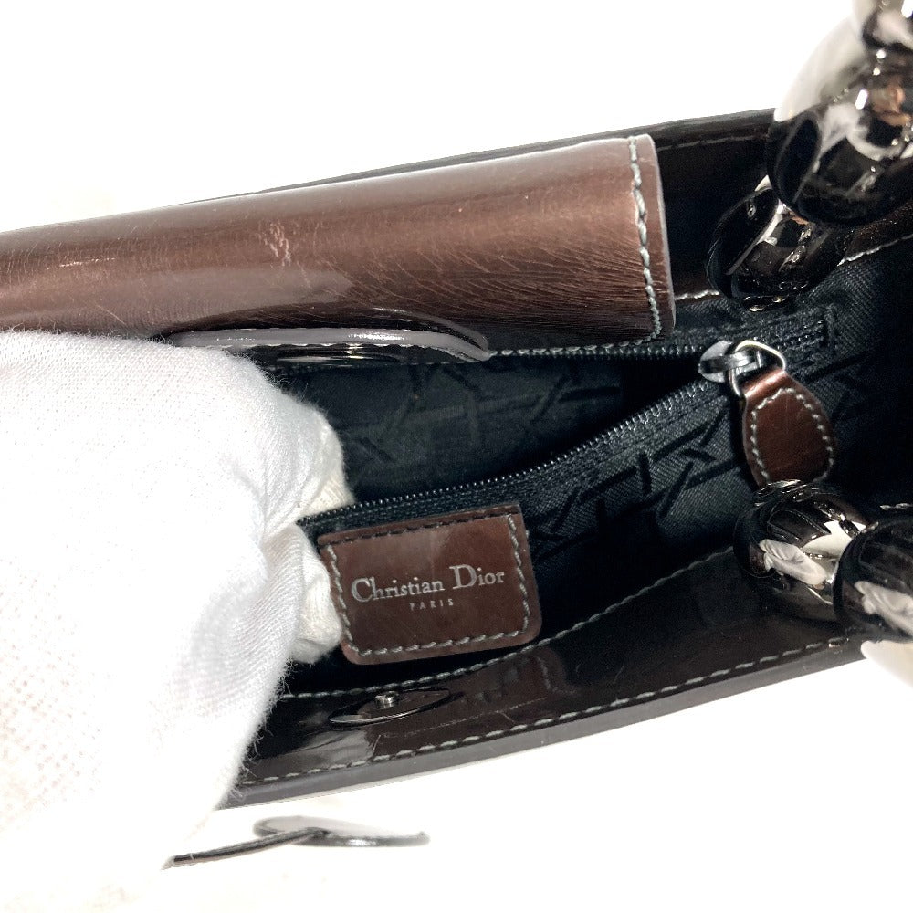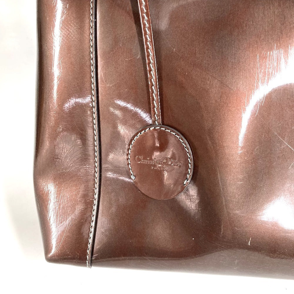 Dior ヴィンテージ マリスパール ロゴ カバン ハンドバッグ パテントレザー ユニセックス ブラウン系
