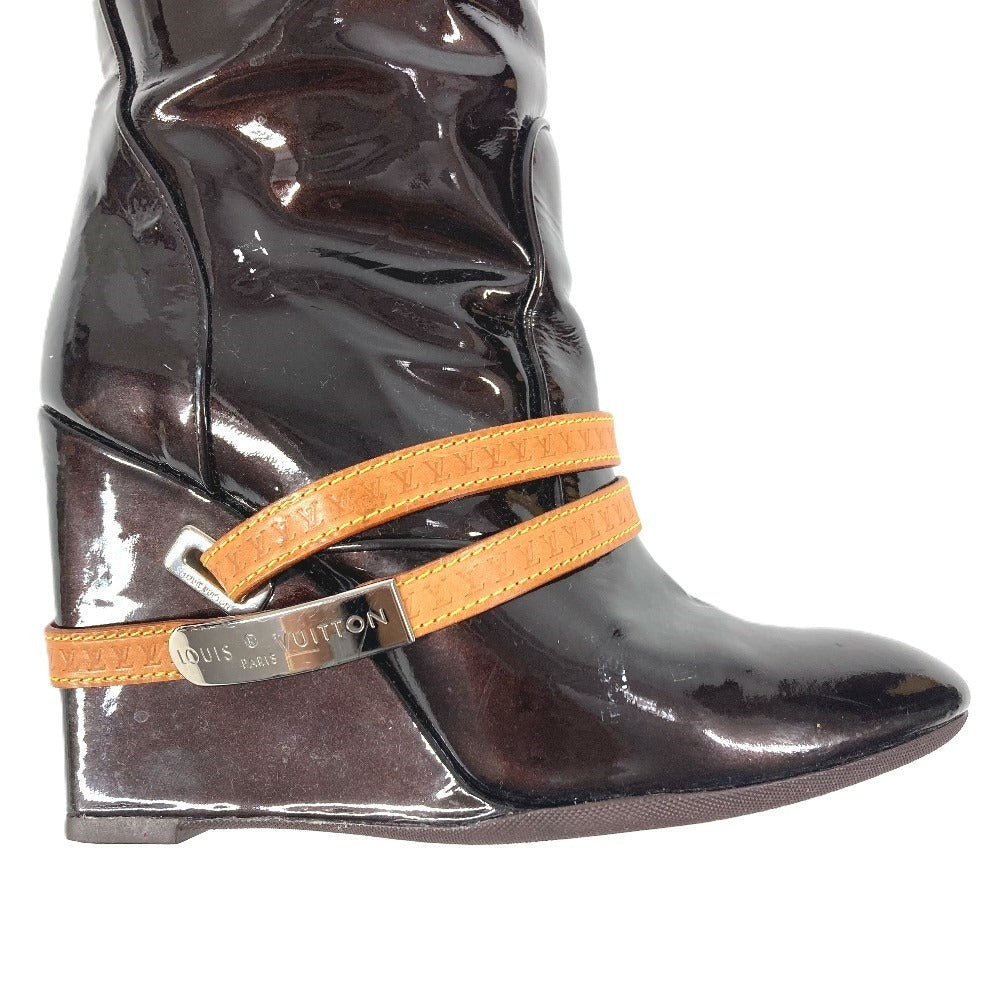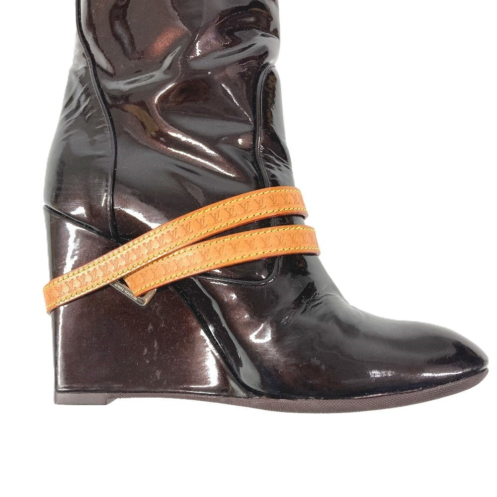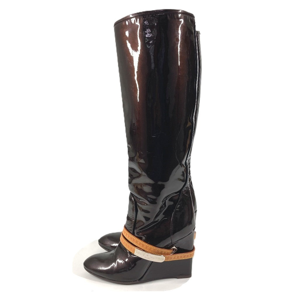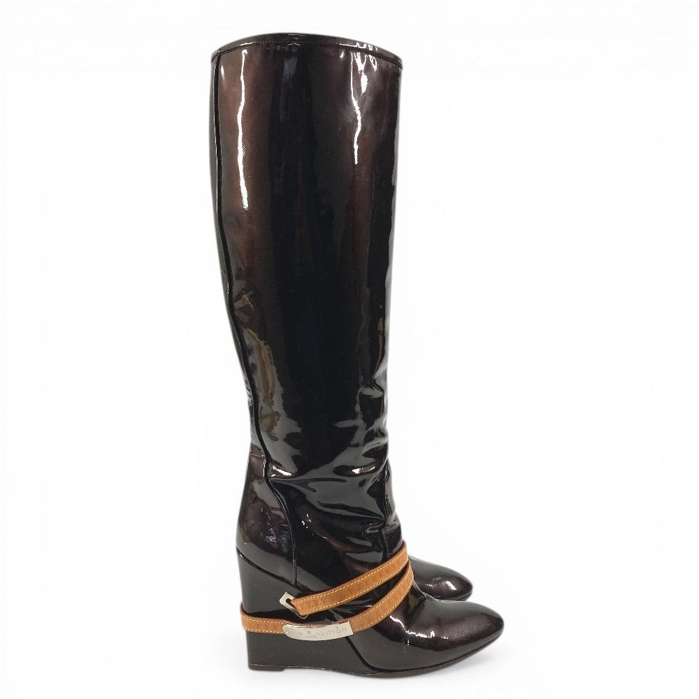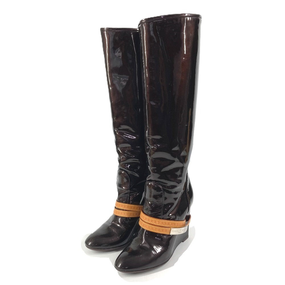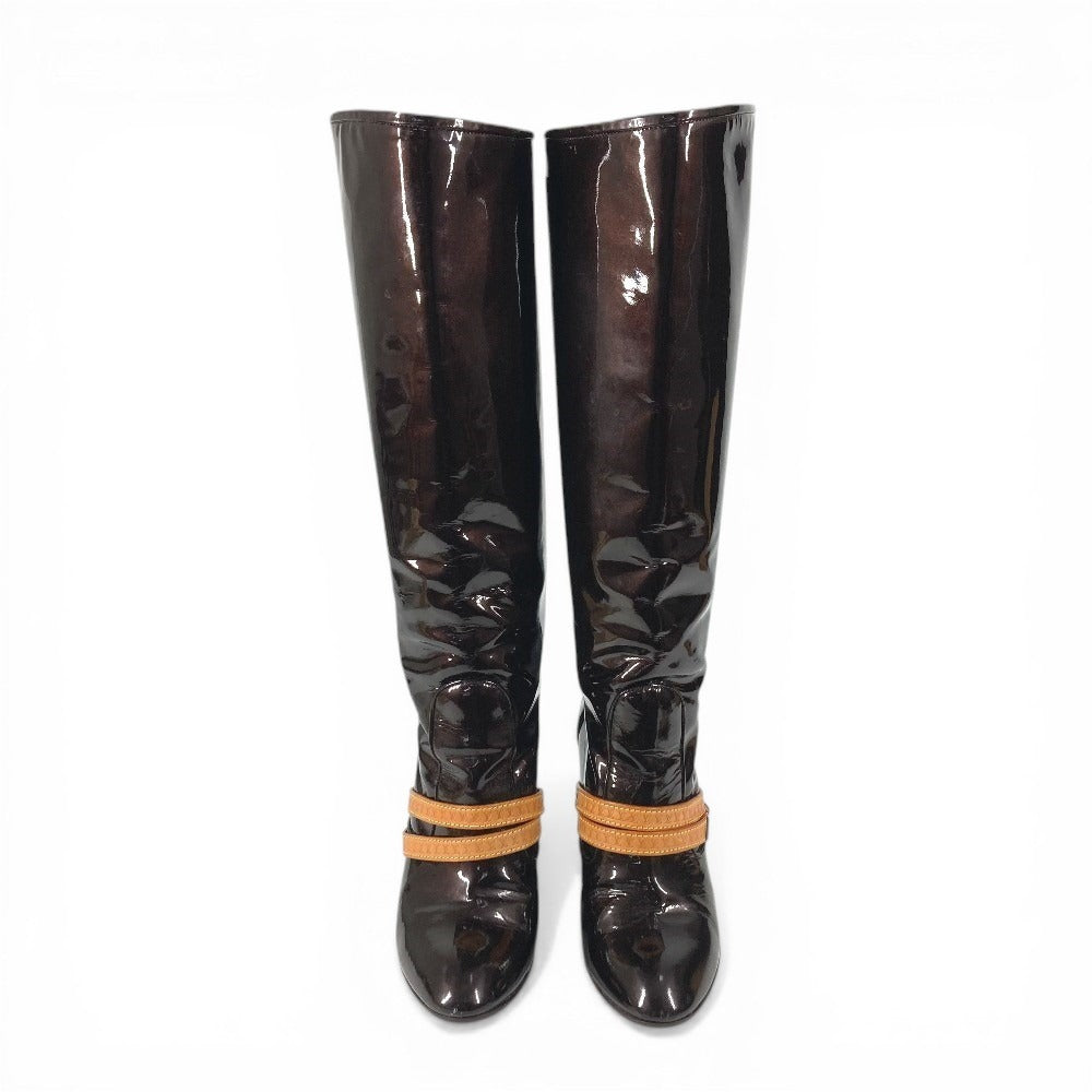 LOUIS VUITTON ヴェルニ ロングブーツ 靴 ベルト付き LVロゴ シューズ ブーツ パテントレザー レディース アマラント パープル