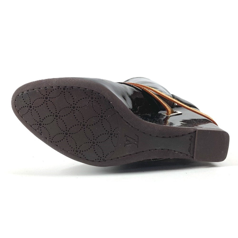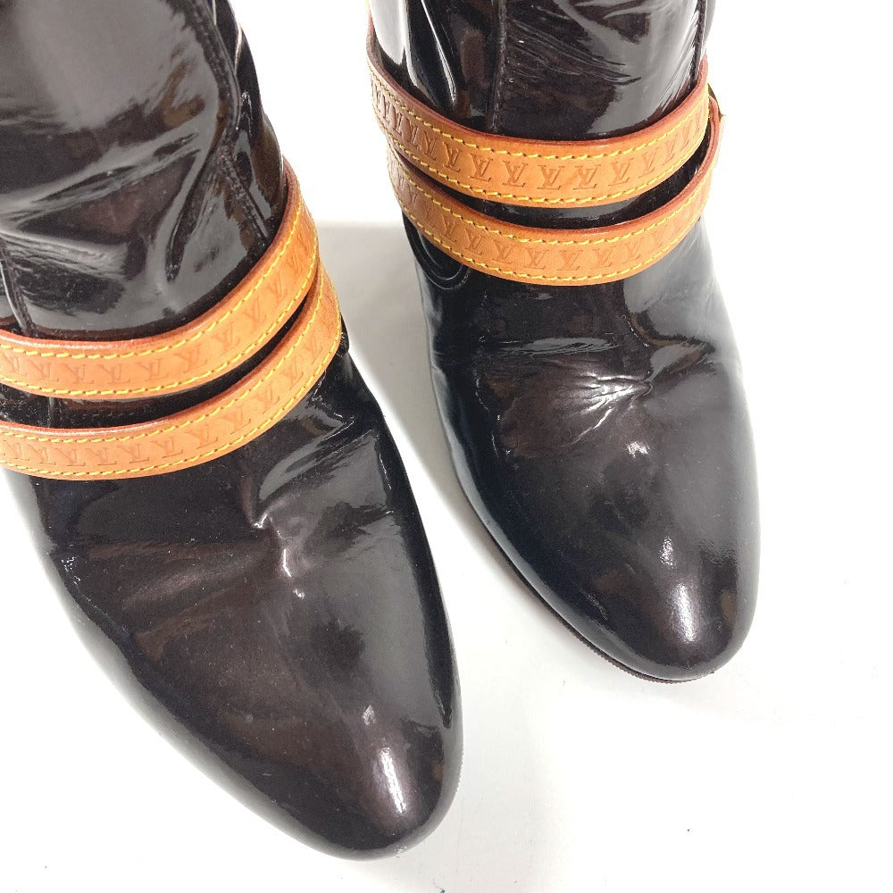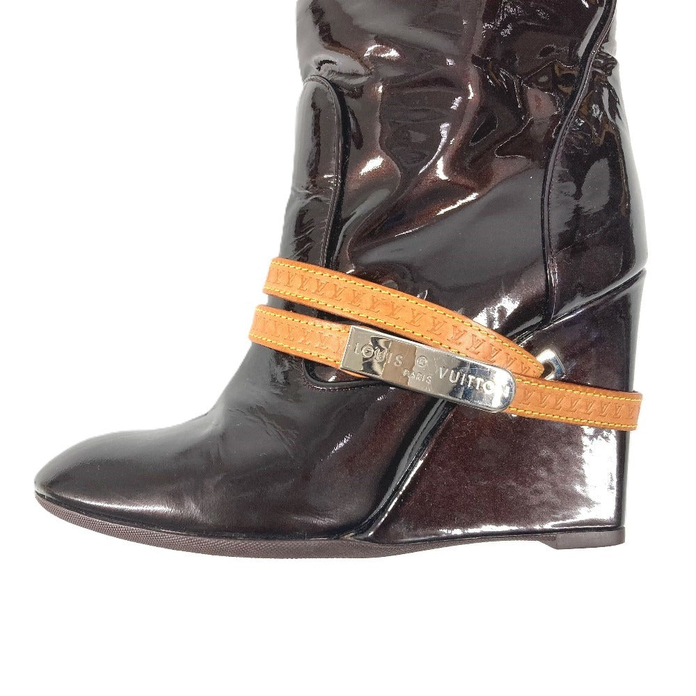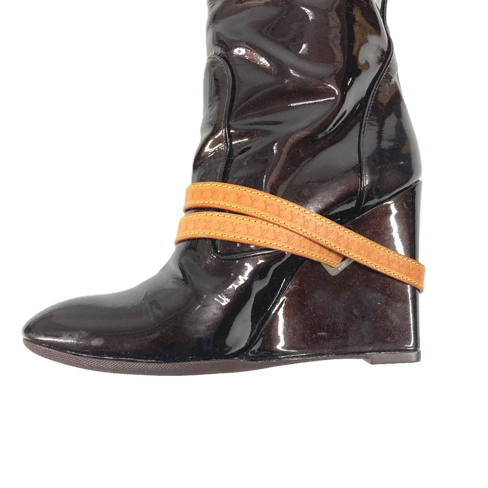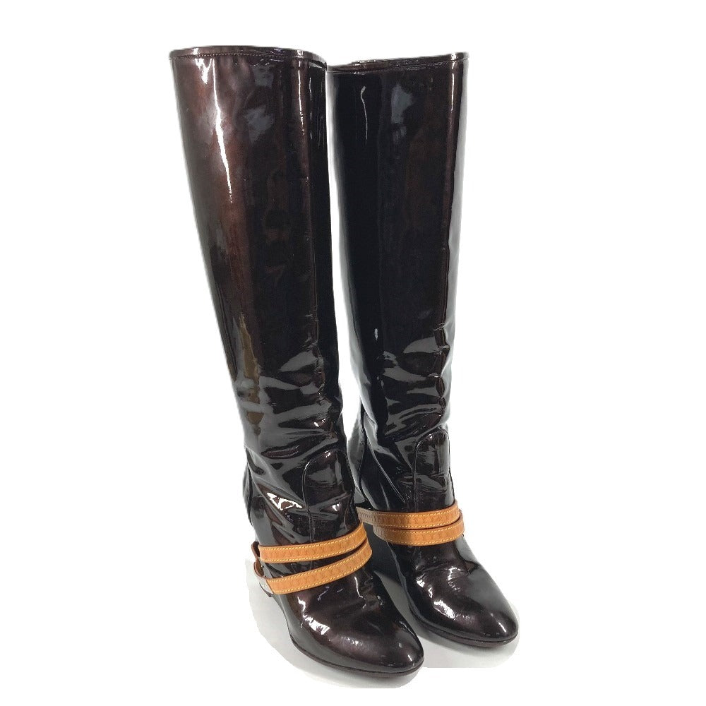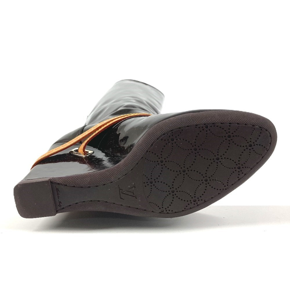 LOUIS VUITTON ヴェルニ ロングブーツ 靴 ベルト付き LVロゴ シューズ ブーツ パテントレザー レディース アマラント パープル
