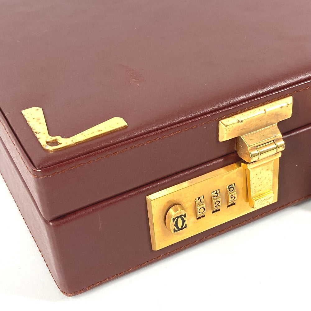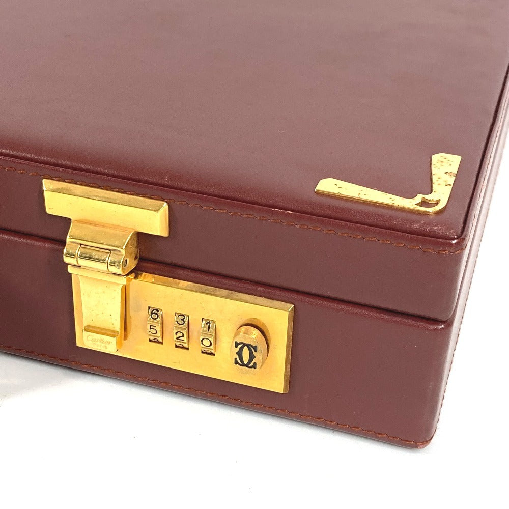 CARTIER ロゴ マストライン アタッシュケース カバン ハンドバッグ トートバッグ ビジネスバッグ レザー ユニセックス ワインレッド