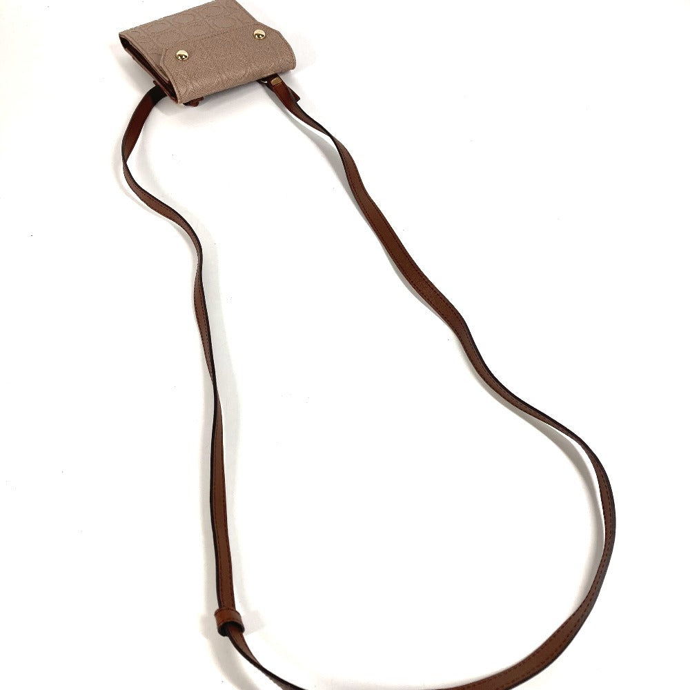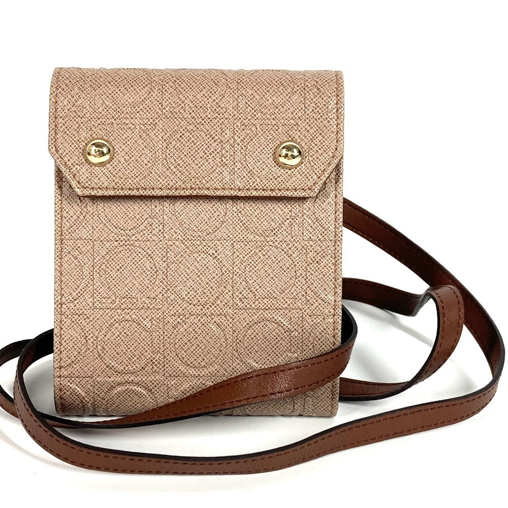 Salvatore Ferragamo ショルダーバッグ ショルダーウォレット ガンチーニ ロゴ コンパクトウォレット 3つ折り財布 レザー ユニセックス ベージュ系