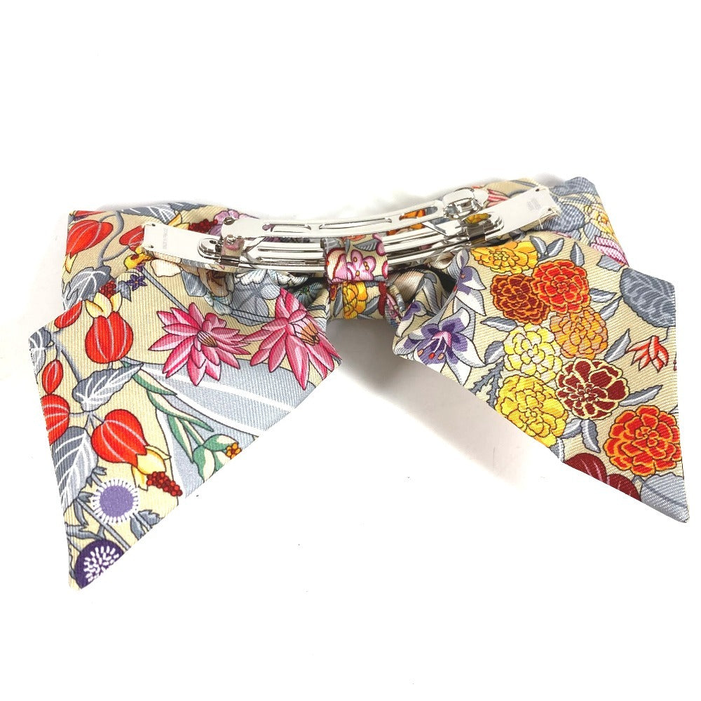 HERMES フラワー 花 バレッタ 《グルネル》 PM 《ブルーム》 ヘアアクセサリー リボン りぼん バレッタ シルク レディース ベージュ