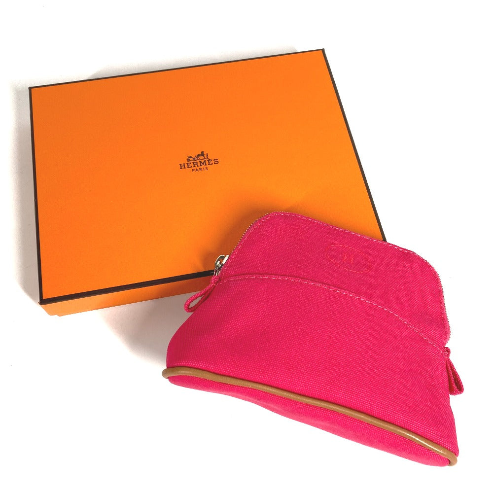 HERMES ボリードポーチ ミニミニ メイクポーチ 化粧ポーチ ポーチ レザー/キャンバス ユニセックス ハイビスカス ピンク