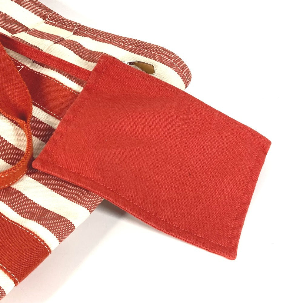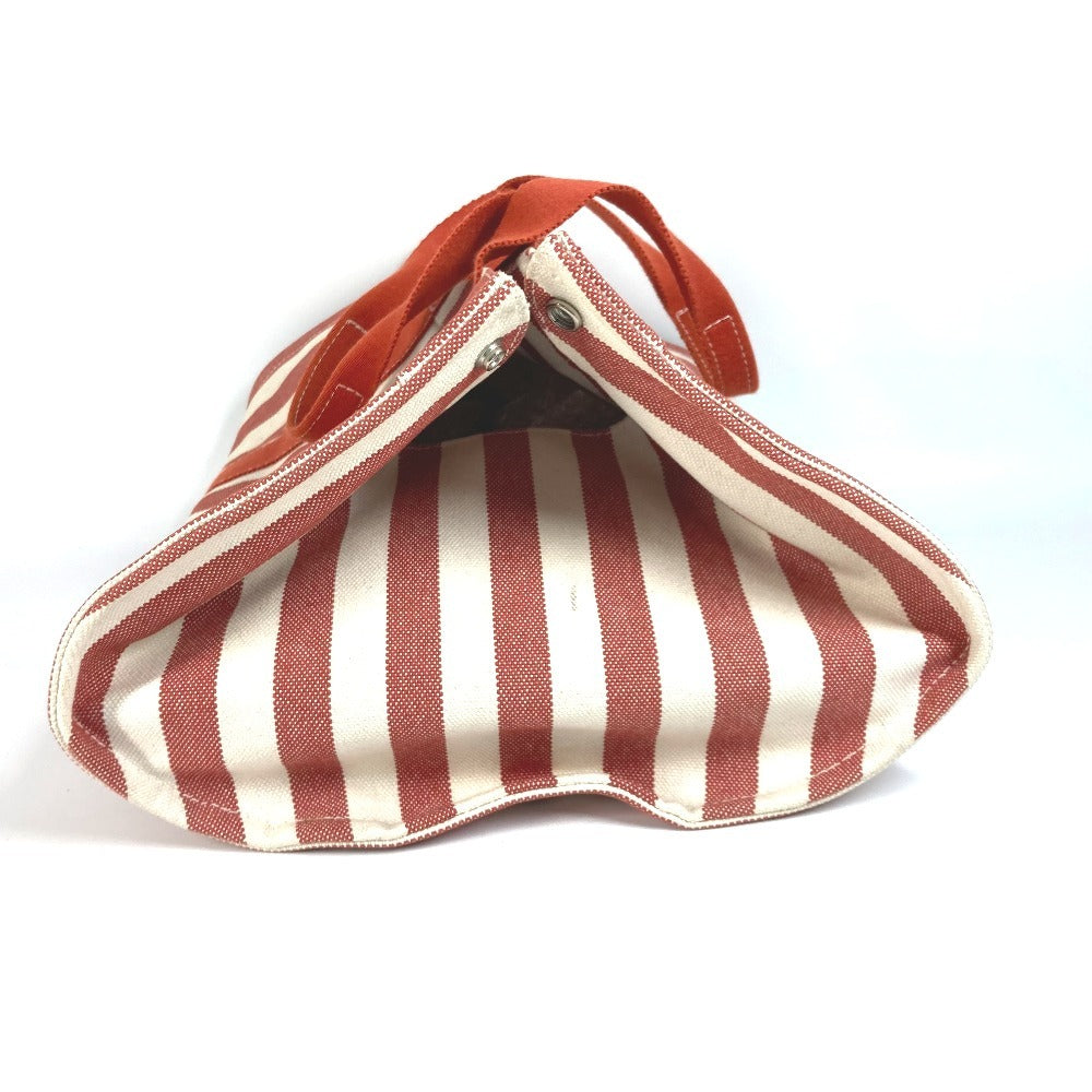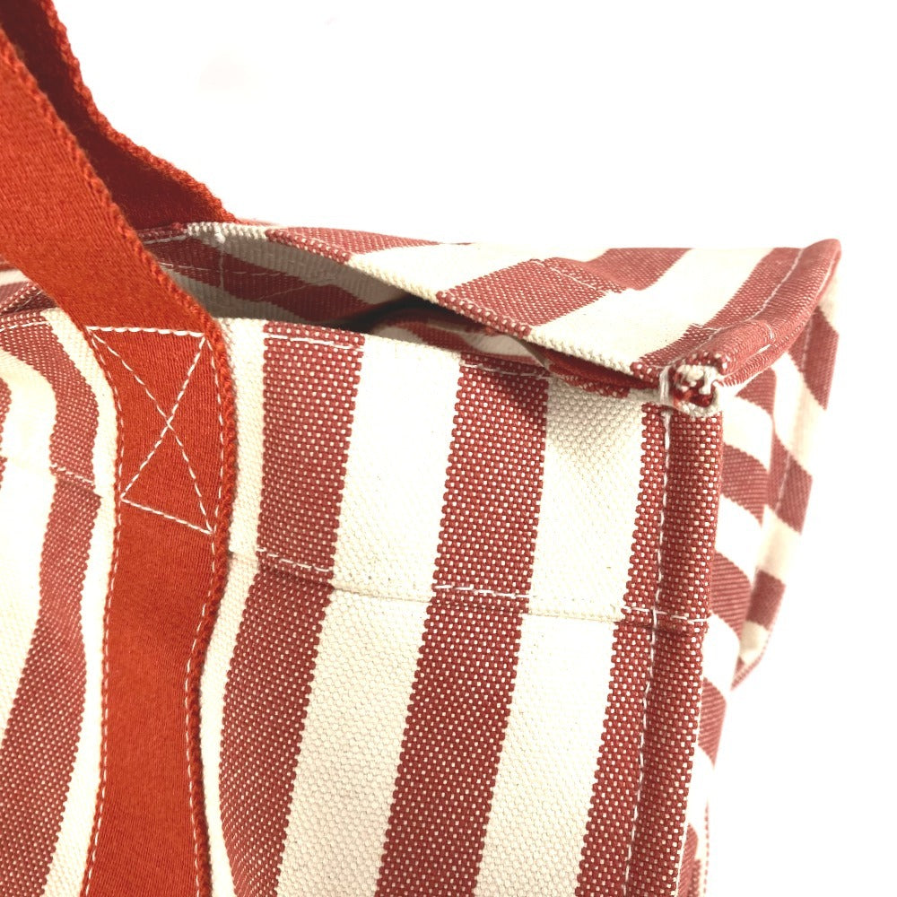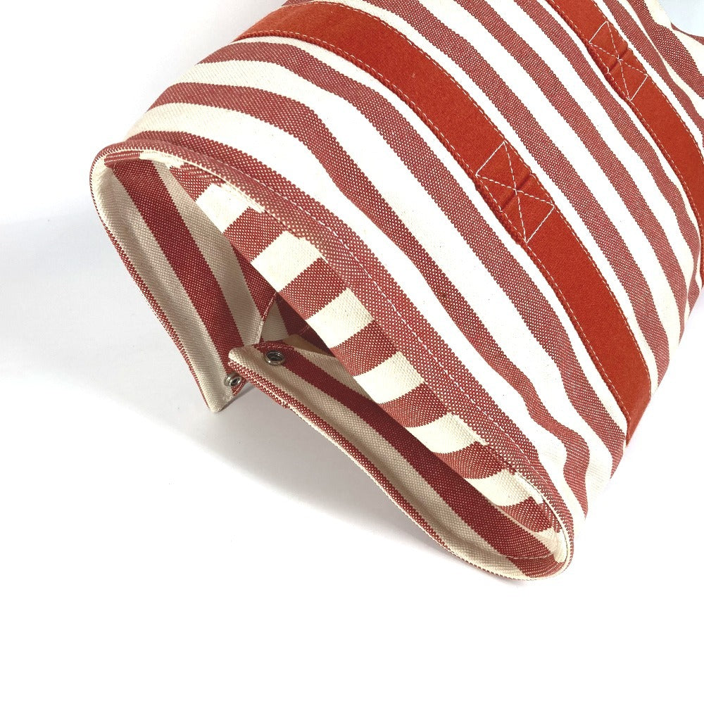 HERMES 파우치 첨부 칸 GM 칸 GM 스트라이프 가방 토트 백 비치 가방 핸드백 캔버스 유니섹스 레드