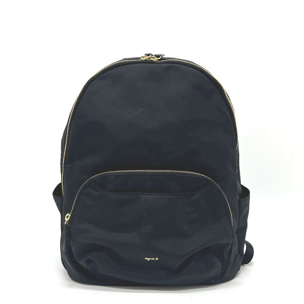 agnes b. FT03A-07 ロゴ カバン バックパック ゴールド金具 リュックサック ナイロン レディース ブラック