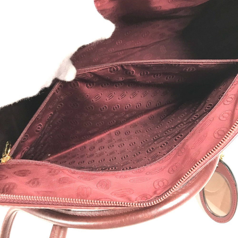 Cartier Marcello Logo Bag Tote Bag Perniagaan Beg Big Bag Boston Beg Banter Beg Kulit Unisex Wain Merah