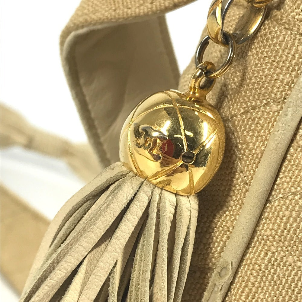Chanel Vintage Logo Matelasse Quilted Fringe Tassel Bag Crossbody Coco Ball Tassel bahu Beg Kanvas Wanita Beige