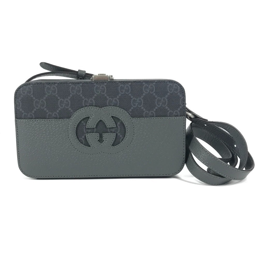 GUCCI 725341 GGスプリーム カットアウト インターロッキングG カバン 斜め掛け ポシェット ショルダーバッグ GGスプリームキャンバス ユニセックス グレー