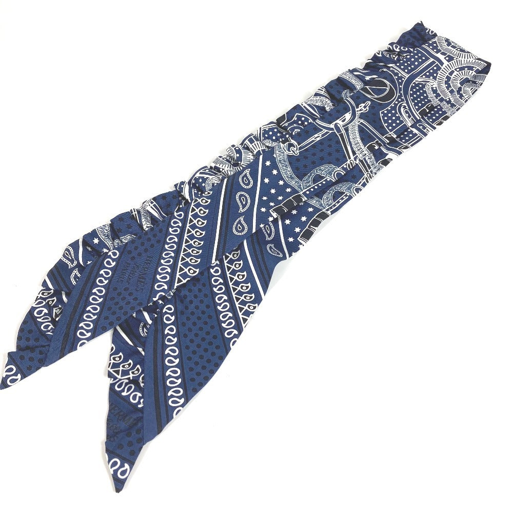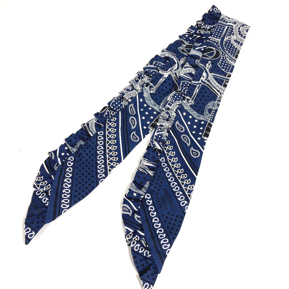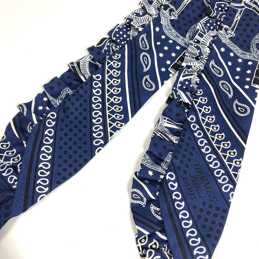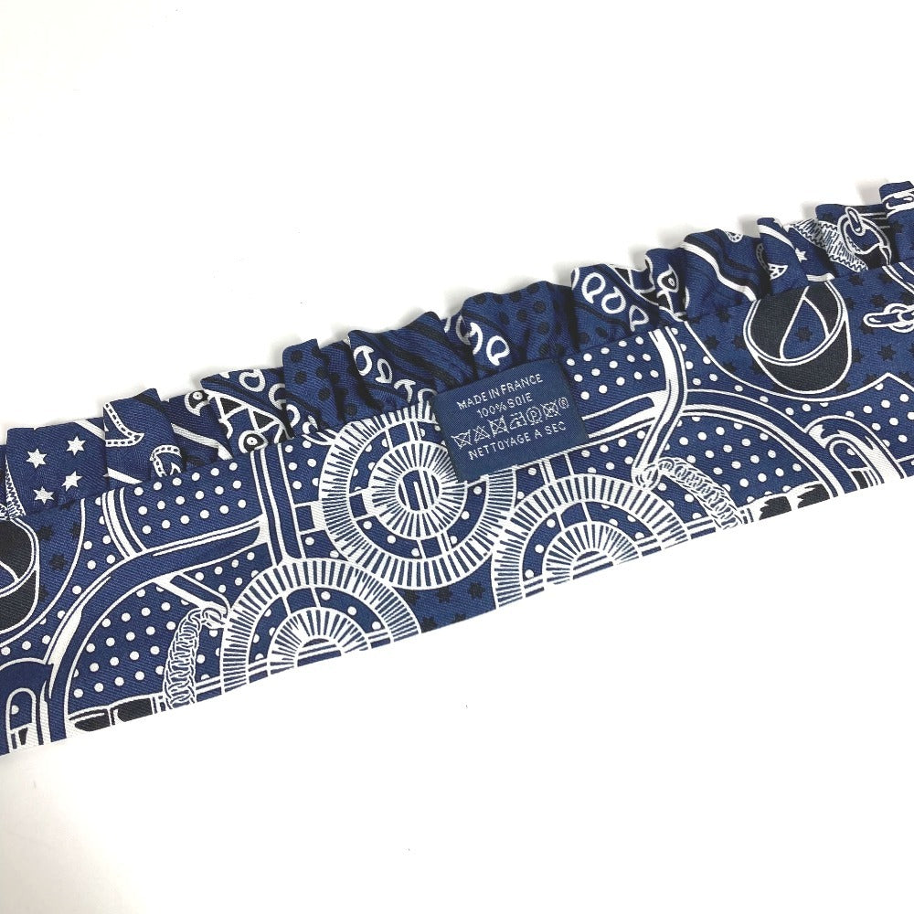 HERMES 《エプロン・ドール》 フリル ツィリー ツイリー アクセサリー ファッション小物 スカーフ シルク レディース マリンフォンセ/ブラック/ホワイト ブルー