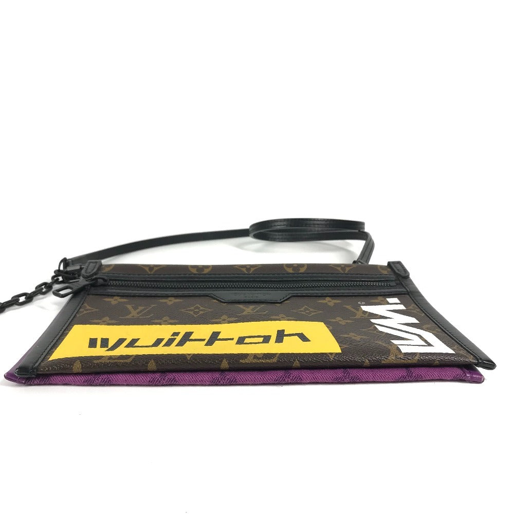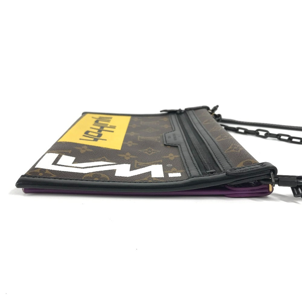 Louis Vuitton M44641 Monogram Logo Story Flat Messenger Pochette Bag Crossbody Bahu Beg Monogram Canvas Unisex Brown