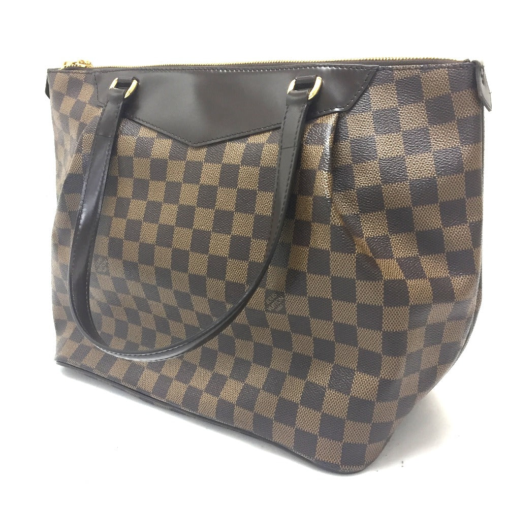 Louis Vuitton N41103 Damier Westminster GM Bag Tote Bag bahu Beg Damier Canvas Wanita Ebene Brown
