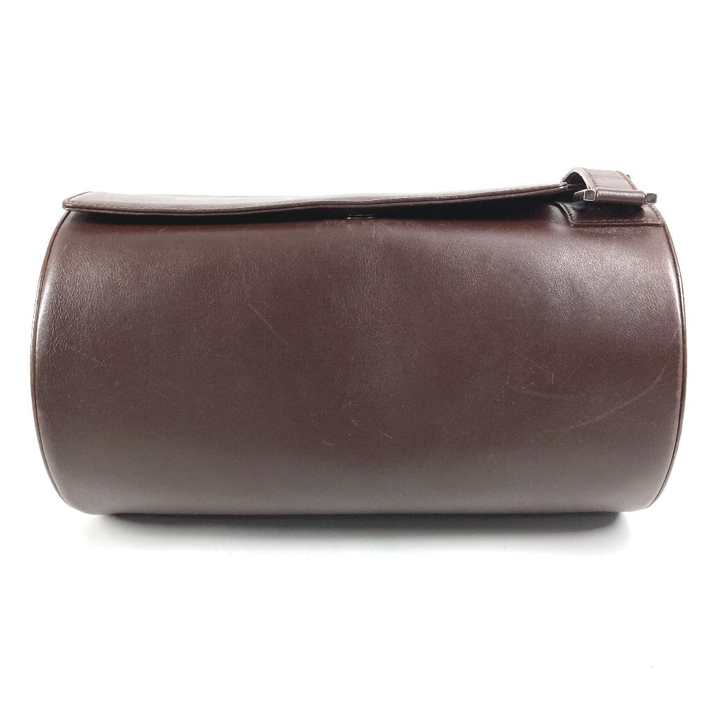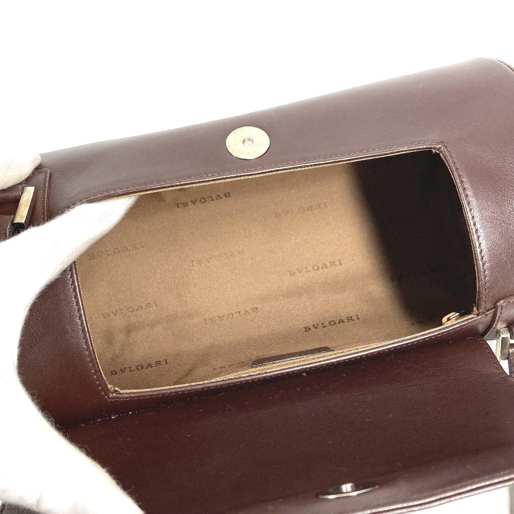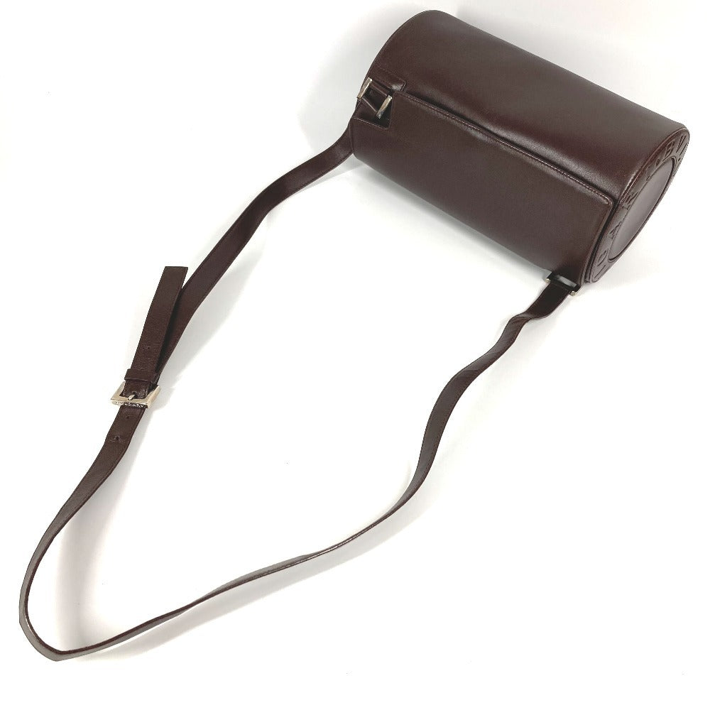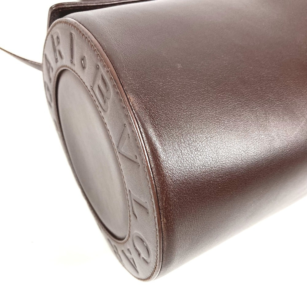 BVLGARI ロゴマニア 筒形 ドラム型 カバン フラップ ショルダーバッグ レザー ユニセックス ブラウン
