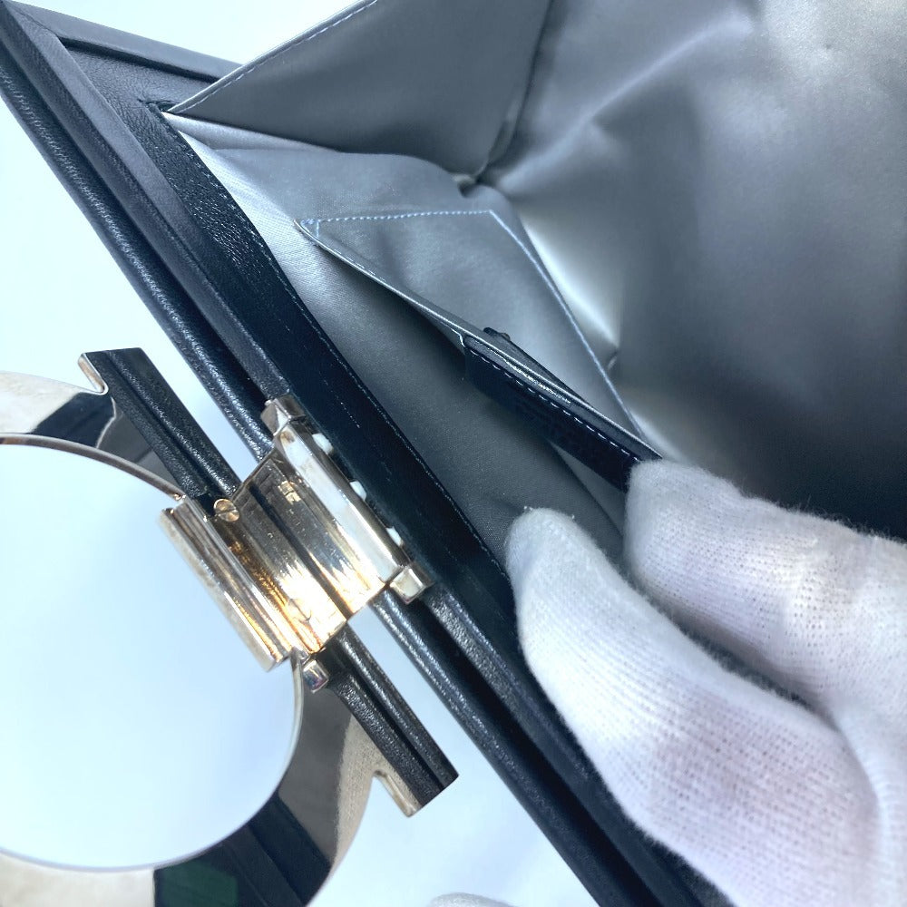 Salvatore Ferragamo Big Gancini Logo Pouch Bag Clutch Bag Kulit Unisex Hitam