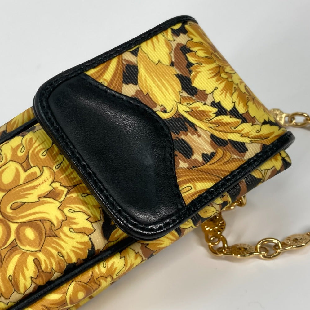 VERSACE ポシェット カバン ヴィンテージ レオパード 豹柄 ヒョウ チェーン 携帯ケース ショルダーバッグ PVC/レザー レディース