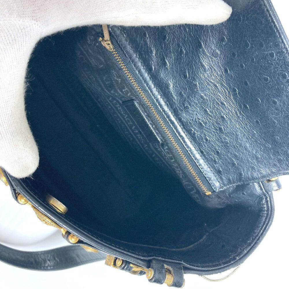 VERSACE ヴィンテージ サンバースト カバン 肩掛け トートバッグ ショルダーバッグ レザー レディース ブラック